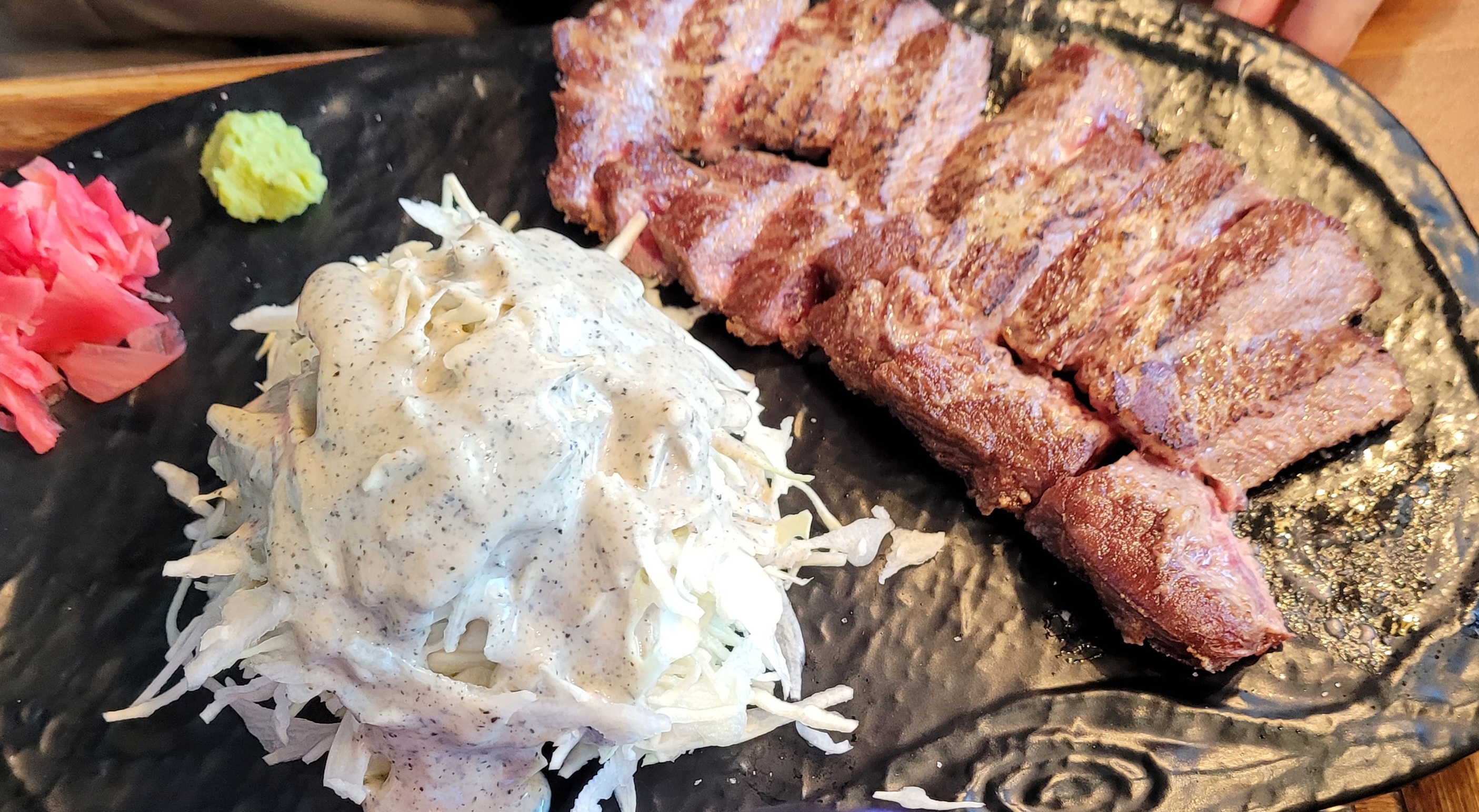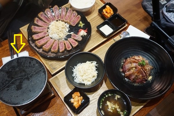규카츠와 니꾸는 개인화로에 고기를 익혀 먹는 거라 개인 취향에 맞게 먹을 수 있어서 좋았는데, 스테키동 정식은 다 익힌 고기에 소스를 얹어서 나오는 거라 고기익힘 정도가 호불호가 있을거 같아요. 대신 스테키동 소스는 정말 맛있었어요.