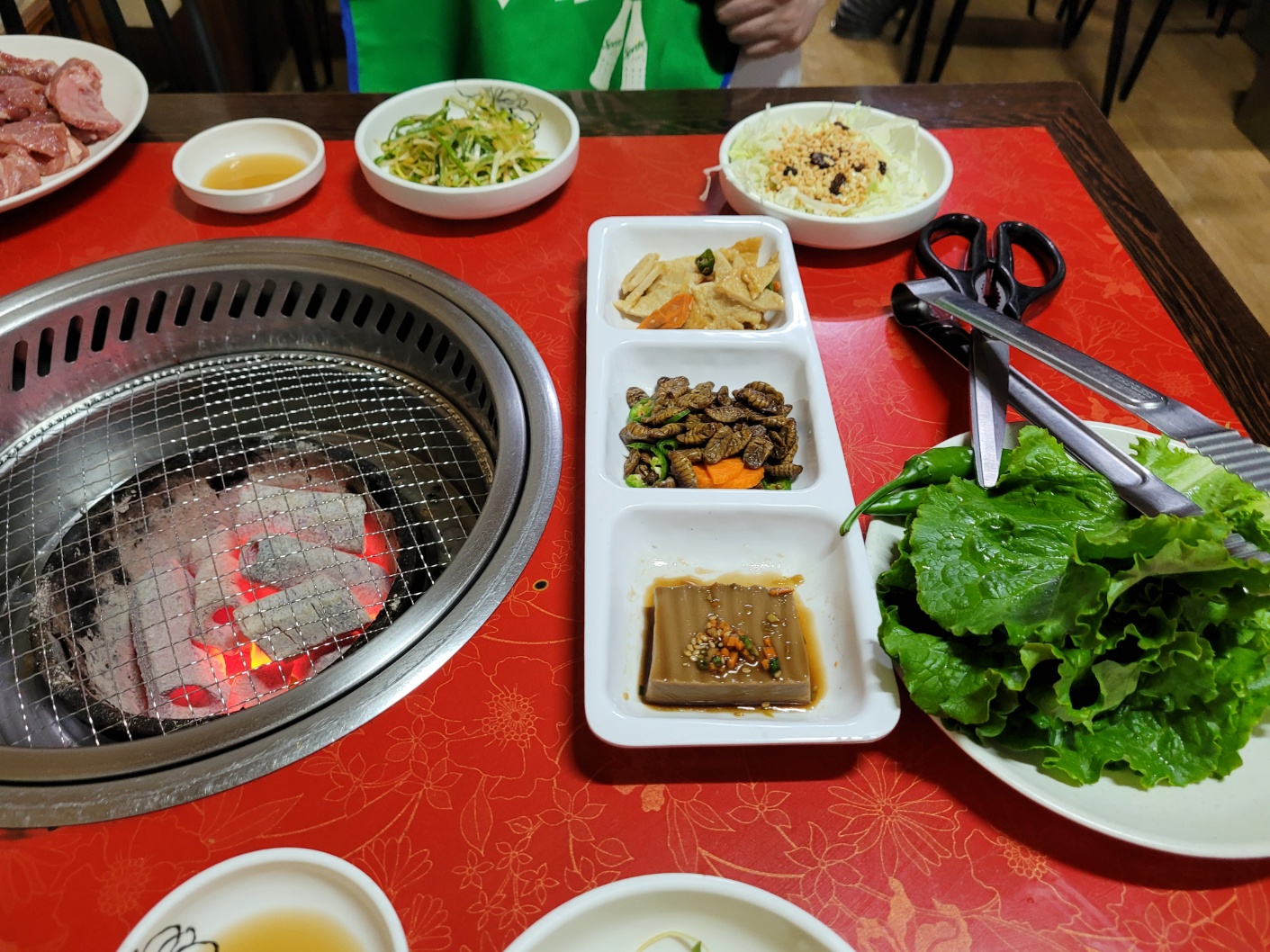 자리에 앉으면 숯을 새로 갈아주시면서 주문을 받으시고 반찬을 세팅해주세요.