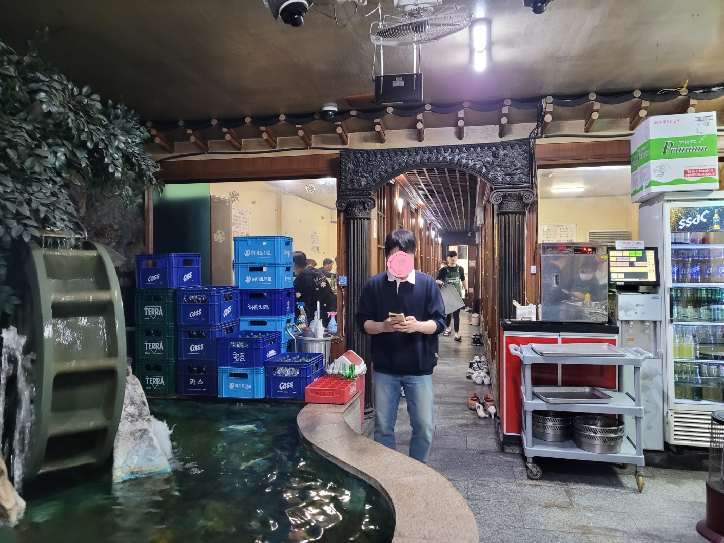 가게는 오래된 노포 느낌이 가득했고 식당 한켠에 위치한 큰 물레방아가 인상적이며 오래된 원목으로 된 가게 기둥이 가게의 연식을 말해주는 듯 했는데 식당안은 꽤 깔끔했어요.