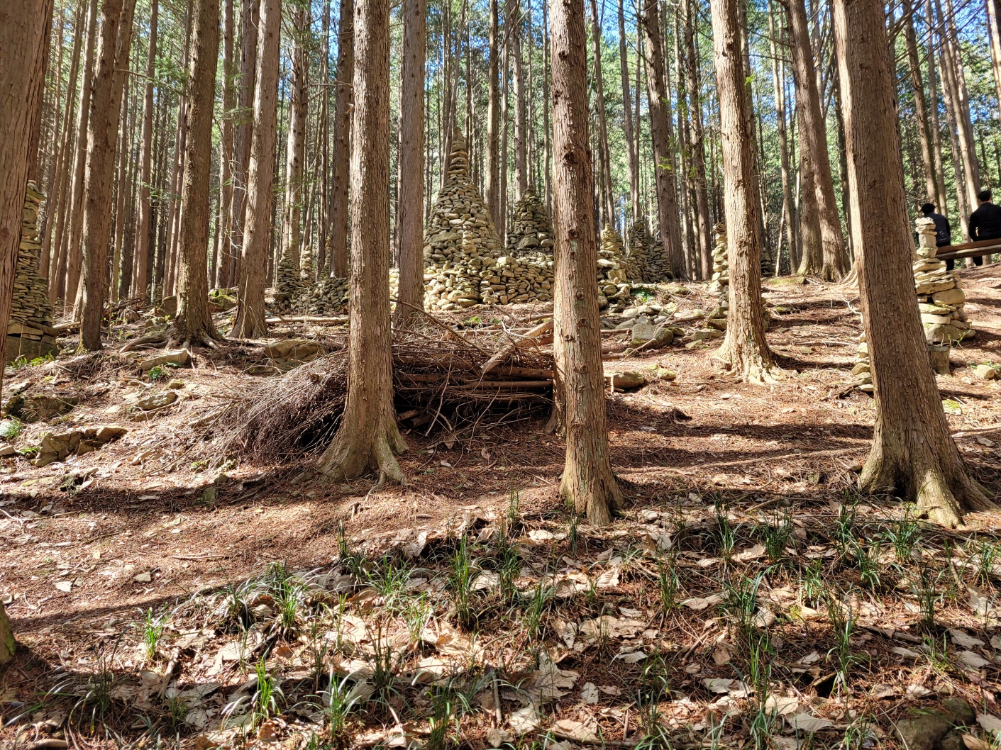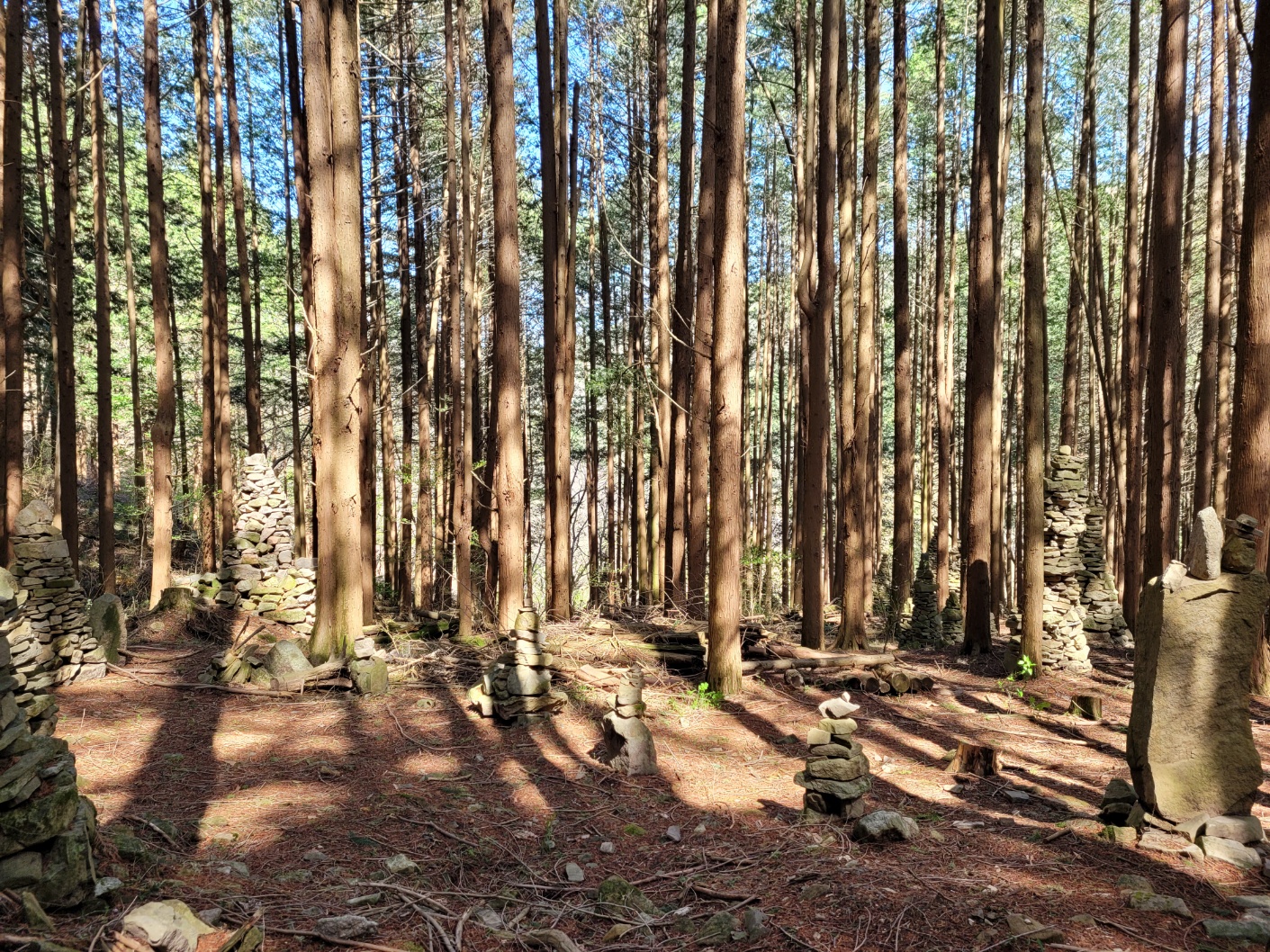 둘레길 마지막에는 돌탑이 가득한 편백나무숲이 나와요.