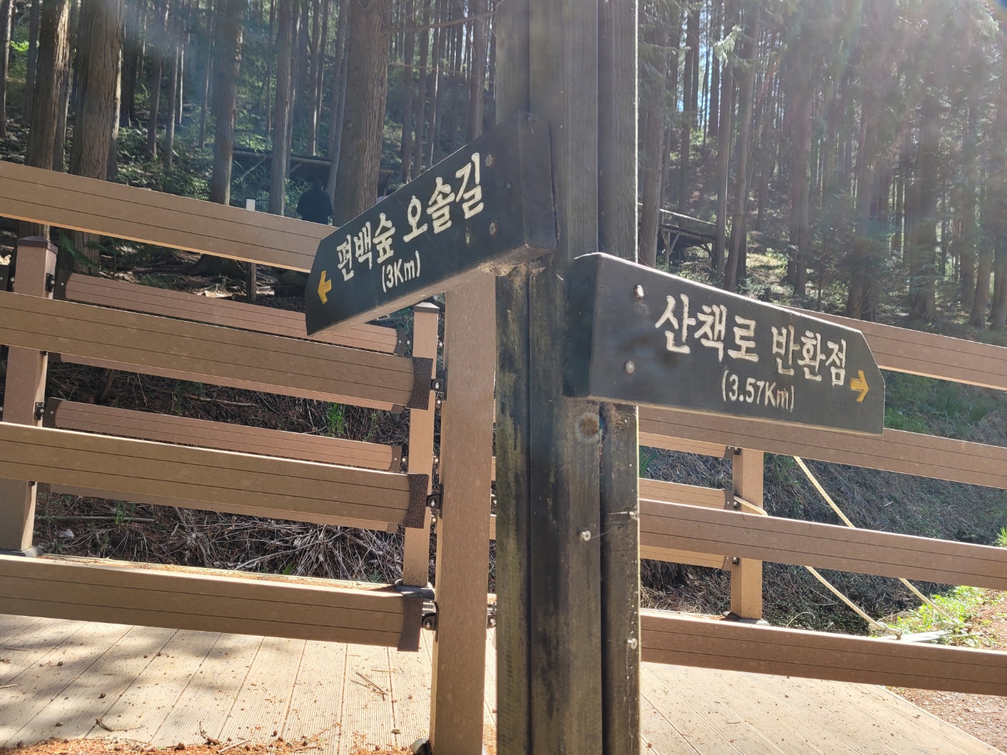 걸어서 약 15분 정도 올라가면 편백나무숲길이 조금씩 보이고, 둘레길 중간중간에 편백나무가 가득한 곳은 앉아서 깨끗한 공기를 마실 수 있는 정자나 벤치 등이 있었답니다.