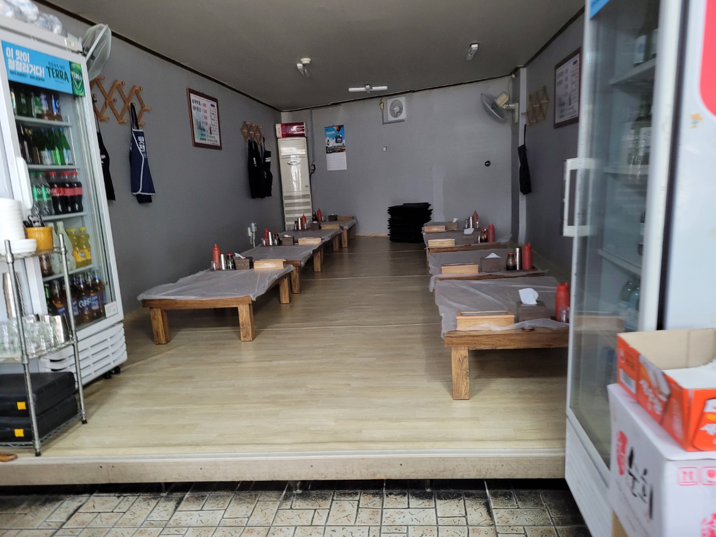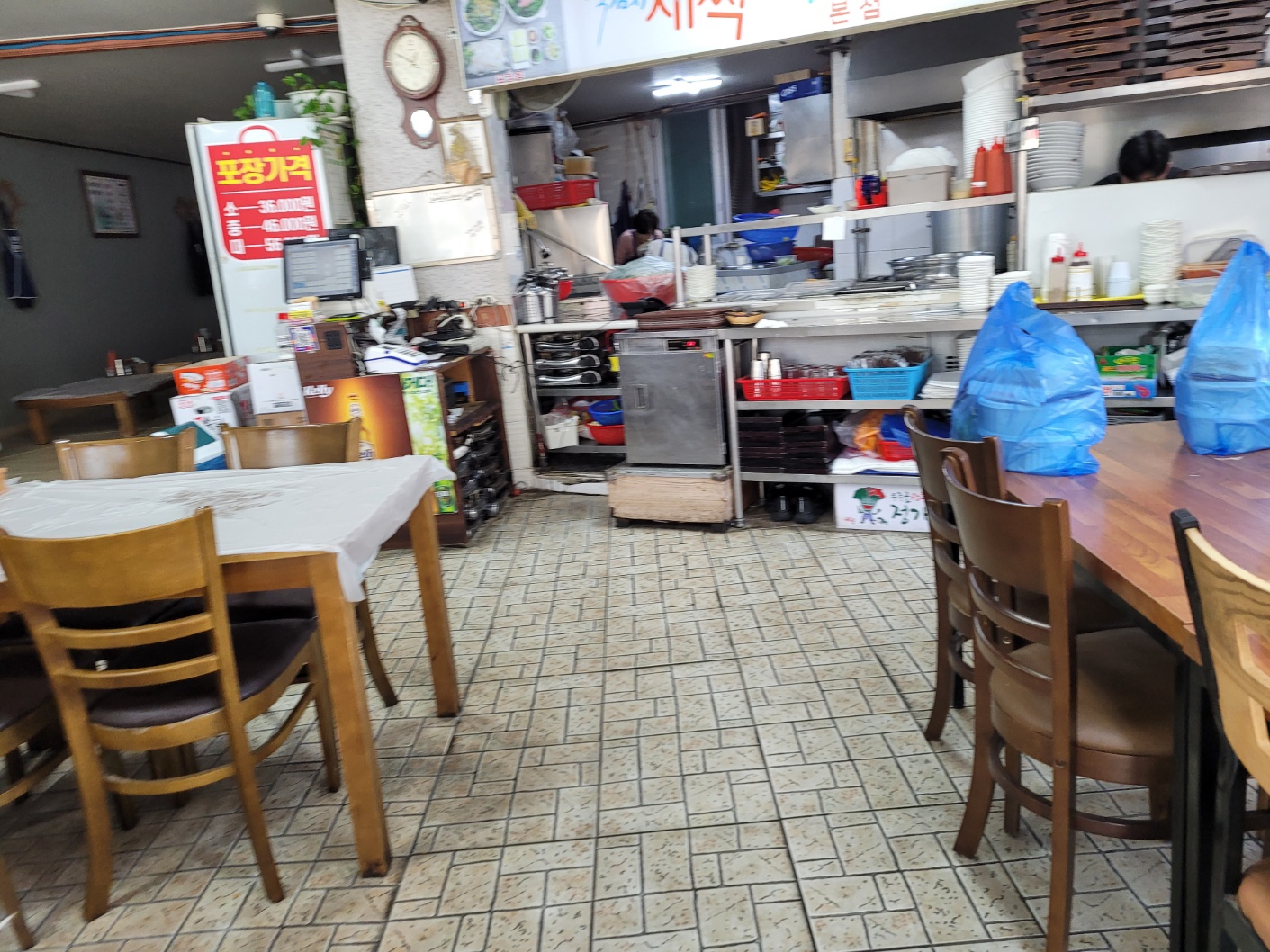 저희가 오픈 시간에 갔는데, 이미 한 팀이 식사중이셨고, 포장 손님들의 주문해놓은 포장도 꽤 있더라구요. 테이블은 입식, 좌식 테이블이 모두 준비되어 있어요.
