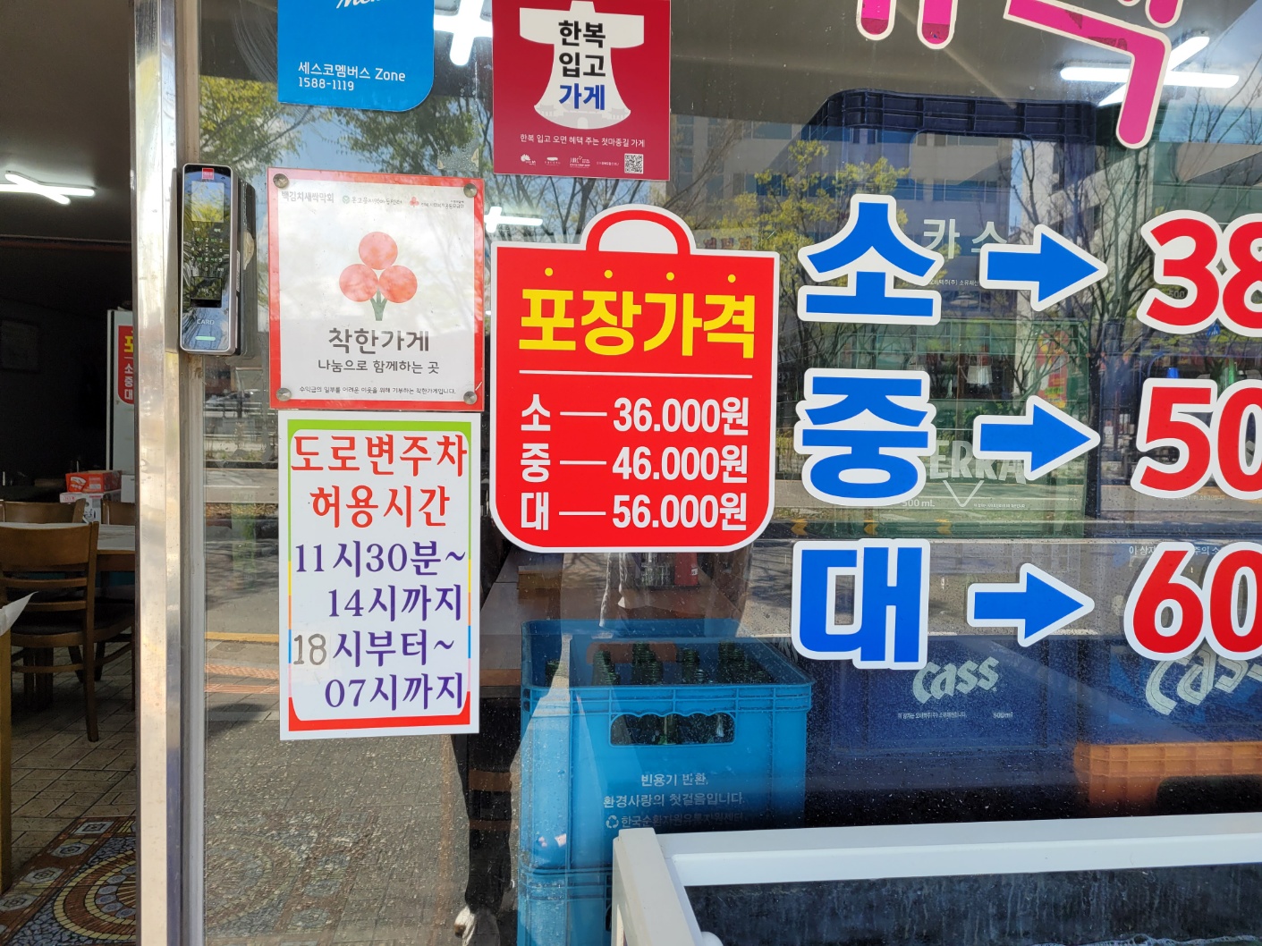 주차는 가게 옆 골목에 가능하며 주차가능 시간도 가게 앞에 적혀있어요.