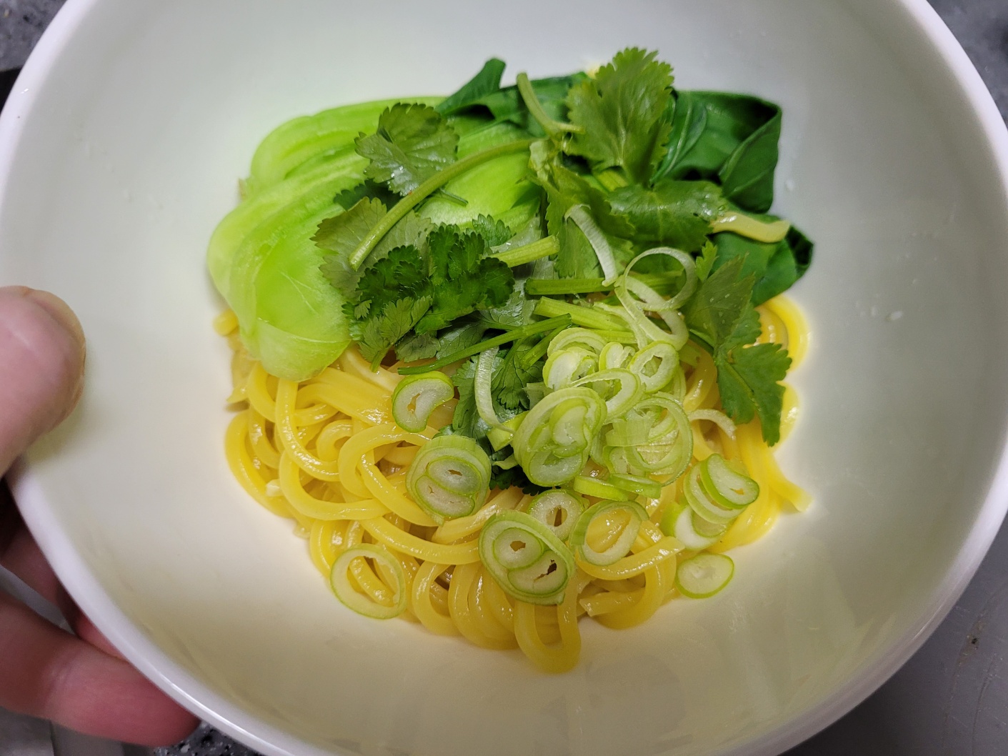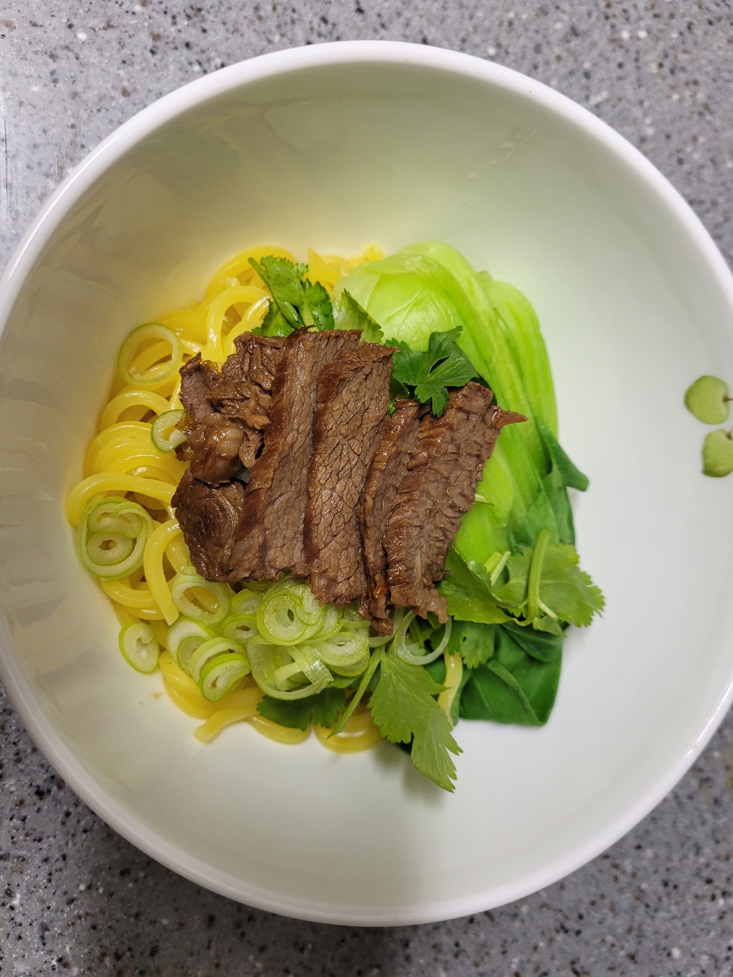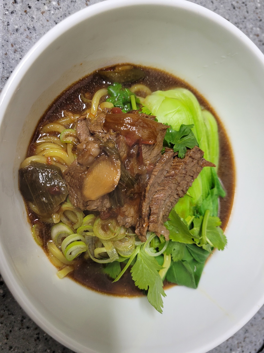 그릇에 면을 담고 고기를 먹기 좋게 썰어서 담은 후, 청경채, 고수, 대파를 올리고 국물을 담아서 먹으면~~