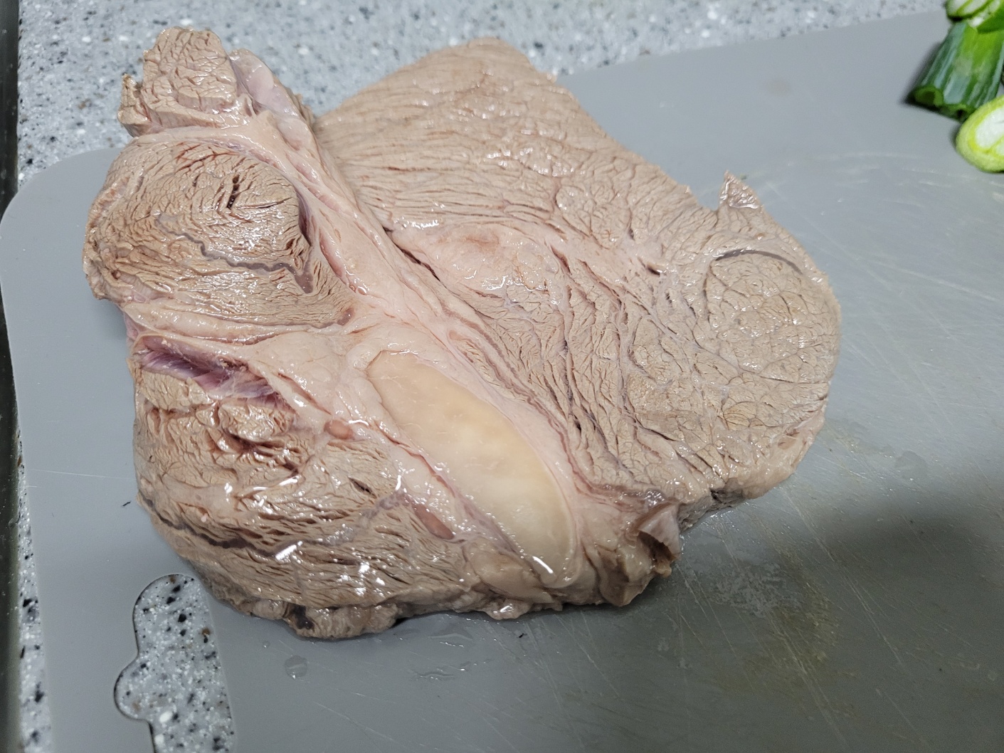 저희는 냉동상태의 소고기를 해동시켜 놓은 거라서, 끓는 물에 고기를 살짝 데친 후 찬물에 씻어서 준비했어요. 그럼 기름 등의 불순물이 제거되서 보다 깔끔한 국물이 된다 하더라구요.