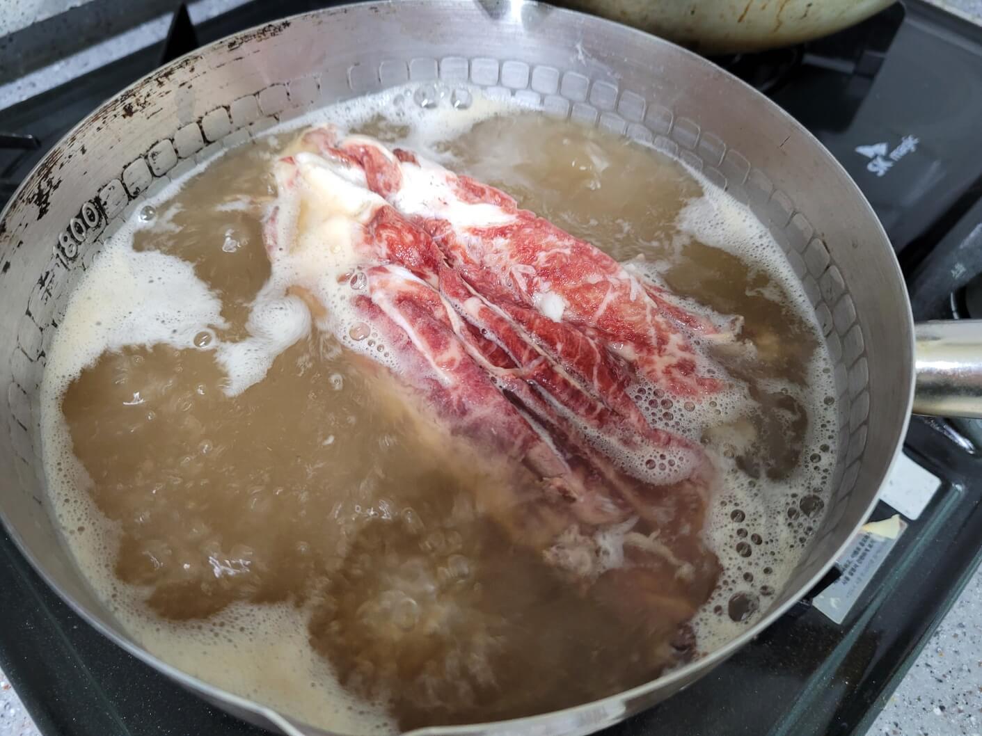 고기도 끓는 육수에 샤브샤브처럼 살짝 데친다는 느낌으로 익혀주고 꺼내주세요.