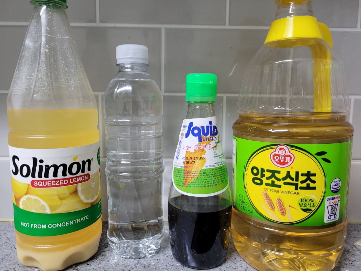 설탕 3T, 피쉬소스 2.8T, 물 1.5컵(18T), 식초 2.5T, 레몬즙 2T, 당근 1/5개 다진 거, 양파 1/4개 다진 거, 마늘 1T,