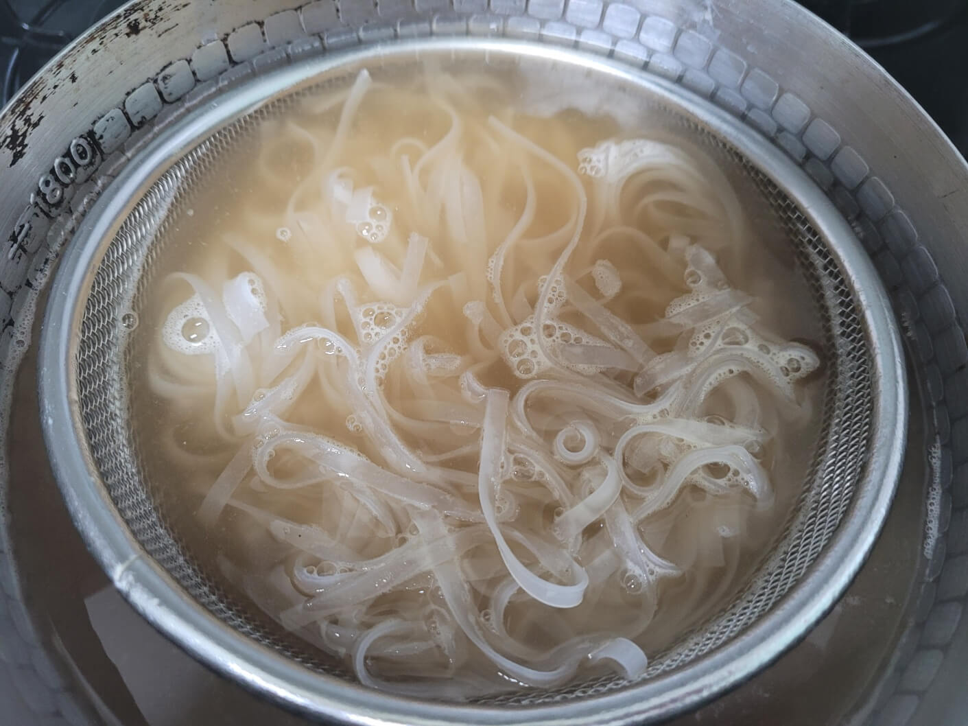 물이 끓어오르면 불려두었던 쌀국수면을 살짝 넣었다가 바로 건져주세요.