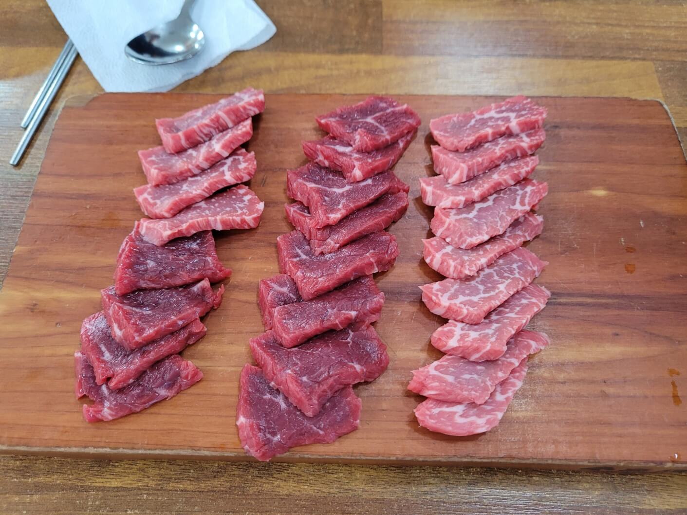 한우 육사시미가 100g 11,000원, 150g 16,500으로 가격이 저렵하더라구요.