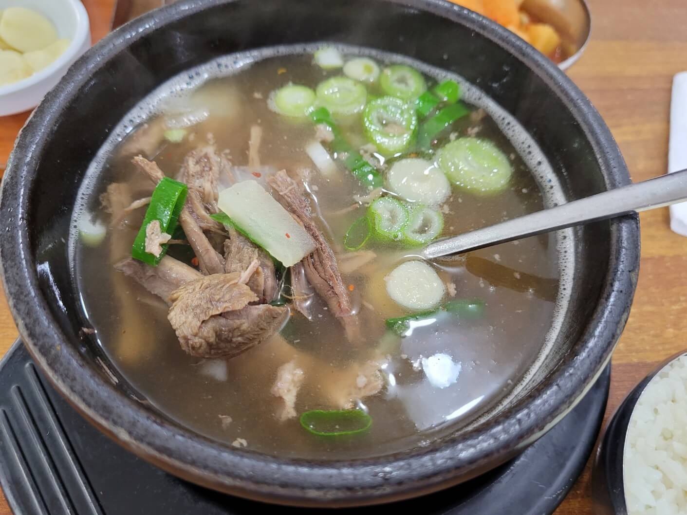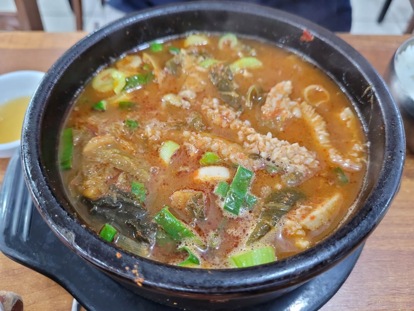 소내장탕은 살짝 냄새는 났지만 얼큰한 국물에 내장과 우거지가 가득했어요.
