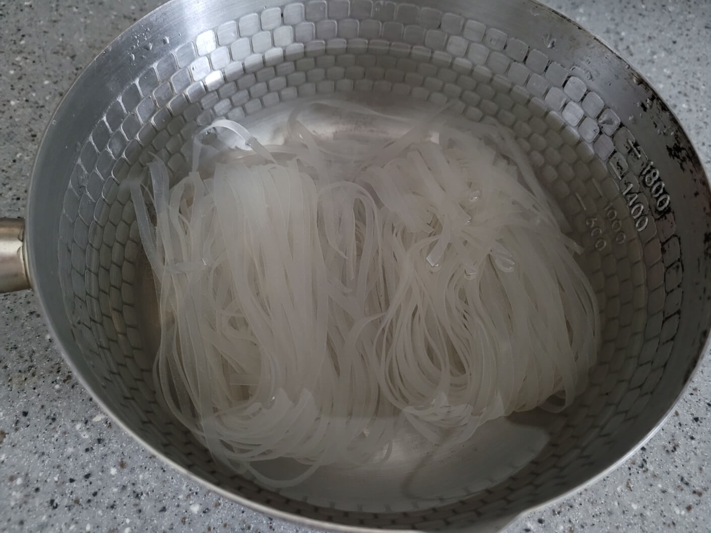 쌀국수면을 미지근한 물에 30분~1시간 정도 불려주세요.