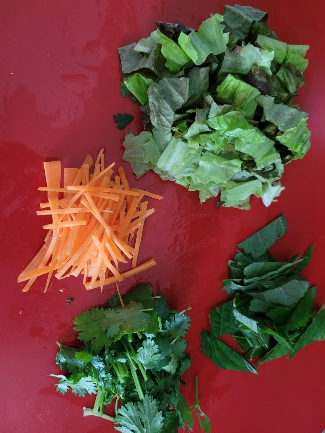 고수와 상추도 한 입크기로 썰어서 준비합니다.