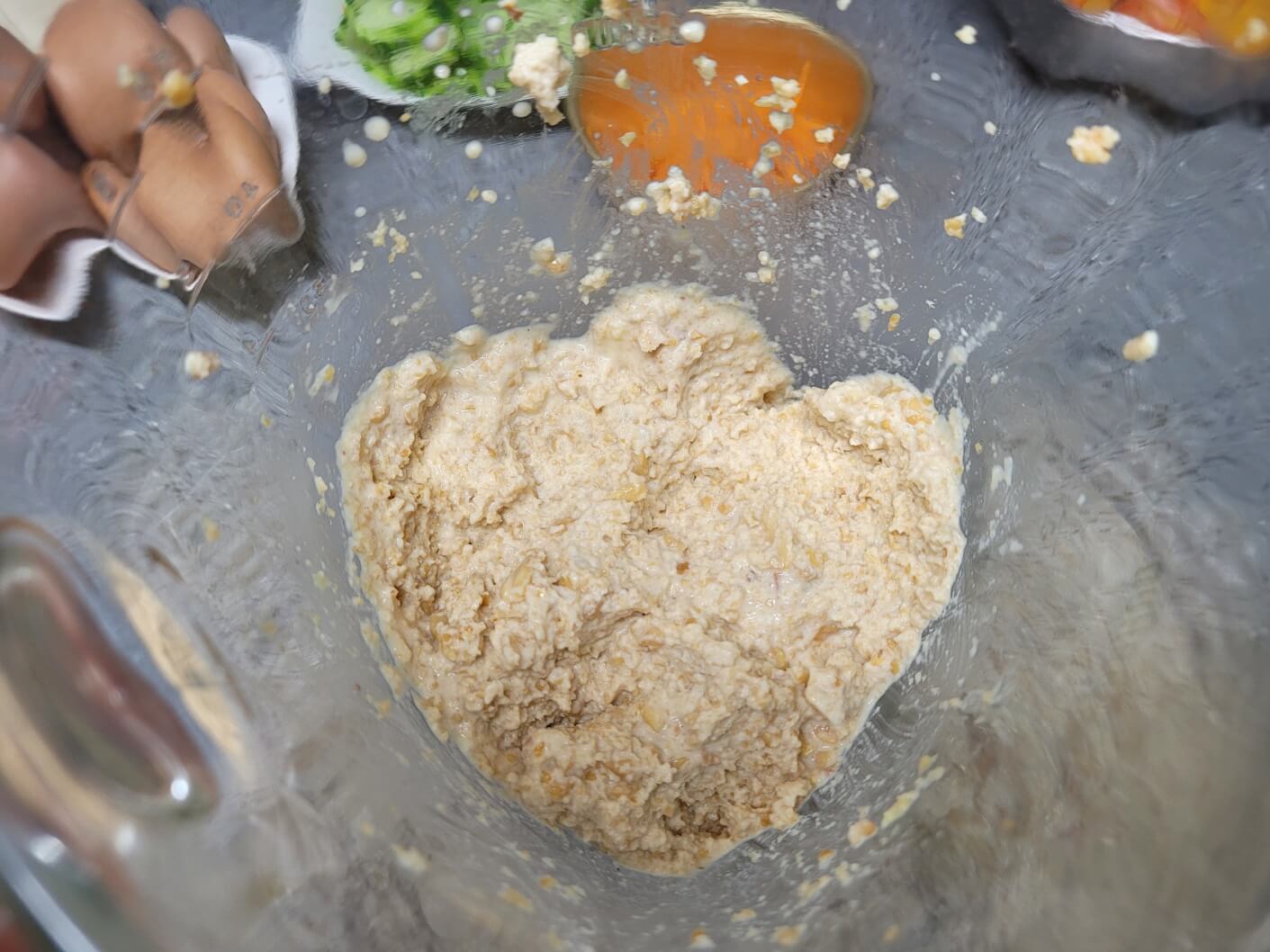 잘게 다진 재료에 땅콩을 넣고 갈아줍니다.