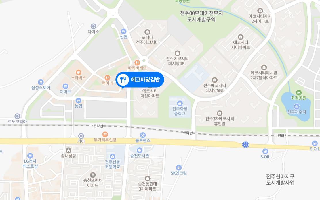 이번 포스팅은 전주 송천동, 에코시티에 위치한 김밥맛집인 ‘에코마당김밥’ 이에요.