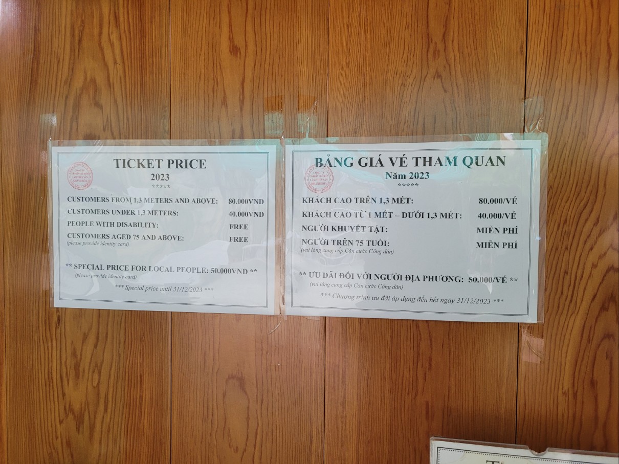 입장료는 성인은 1당 80,000동이에요.