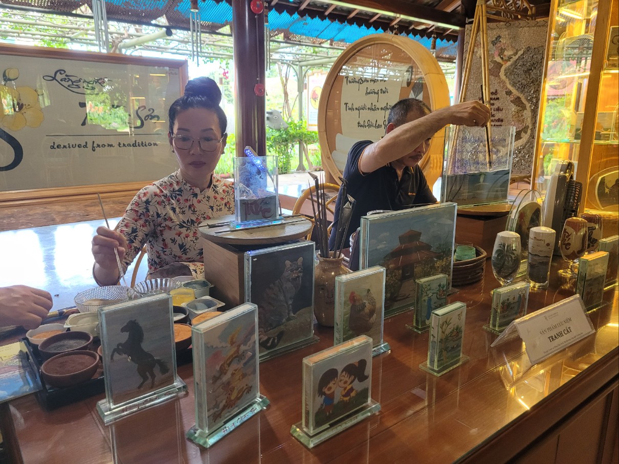 숫자의 의미를 담아 그림을 그리시거나 베트남 각지의 모래로만 공예품을 만드시는 분, 실로 그림을 그리시거나 베트남 나무로 전통악기를 만드시는 분까지 다양한 분야의 장인들이 계셨어요.