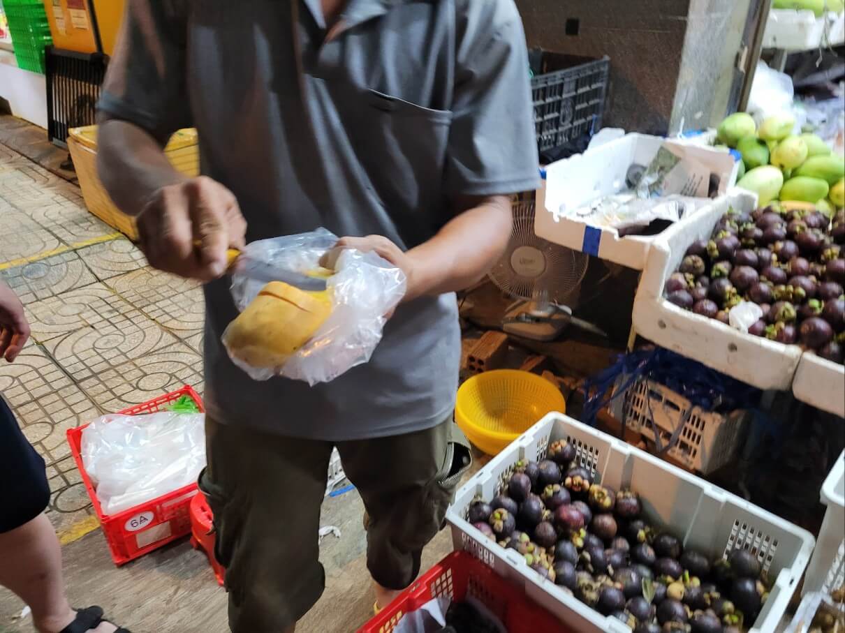 여기는 다행히 두리안을 소포장해서 판매해서 1팩을 120,000동, 약 6,500원에 구입했어요.
