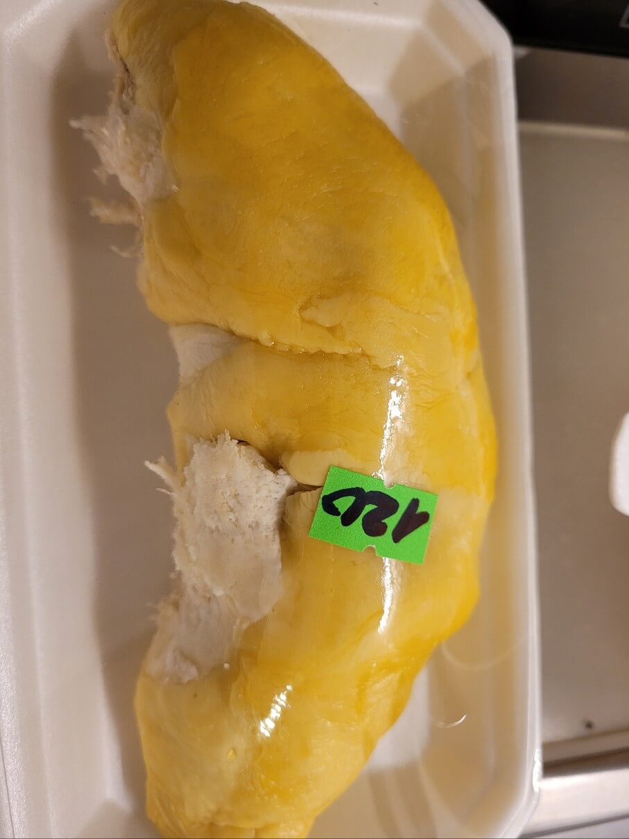 두리안은 매우 맛있는 시즌이 아니어서 맛이 조금 아쉬웠지만 그래도 오묘한 두리안의 향과 맛을 느끼기에는 충분했어요. 다만 씨가 있는 부분을 주셔서 맛과 식감이 아쉬웠어요.