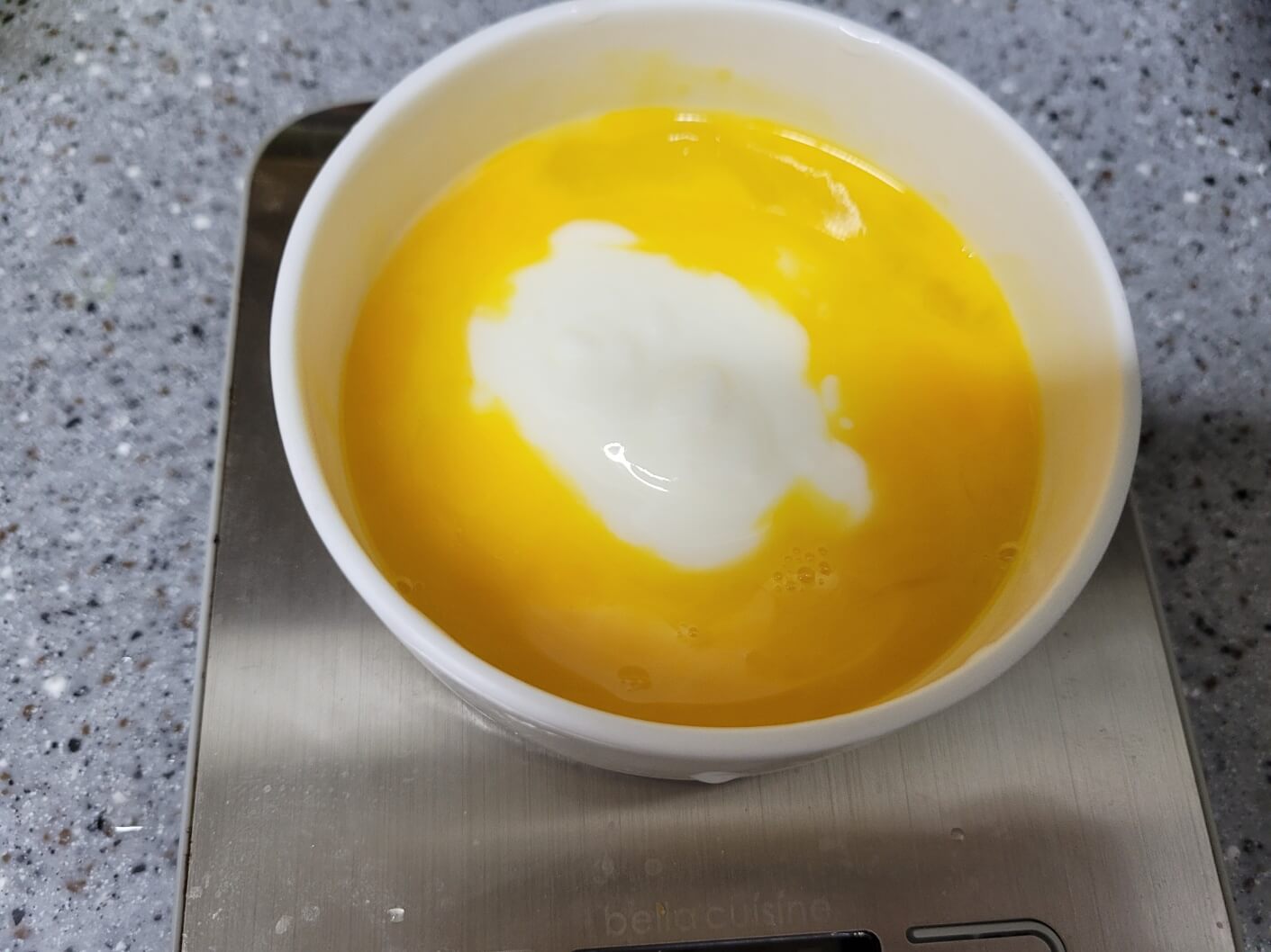 실온의 달걀과 요거트를 잘 섞어줍니다.