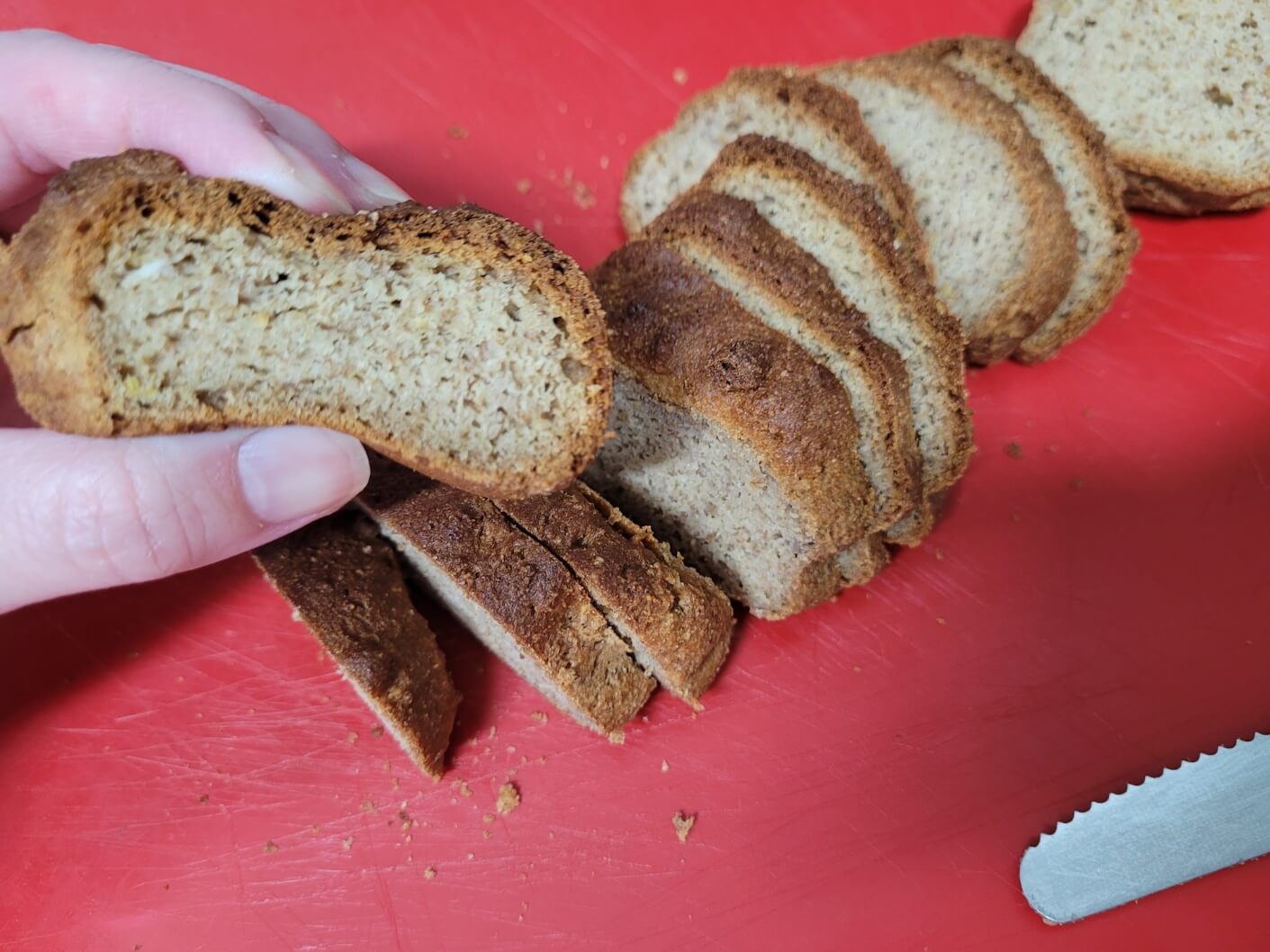 밀가루가 전혀 들어가지 않는 노밀가루 식빵이어서 저탄수, 당뇨, 키토 식단을 하고자하거나 다이어트 목적의 비건 식단을 하는 분들이 드시면 좋은 식빵이에요.