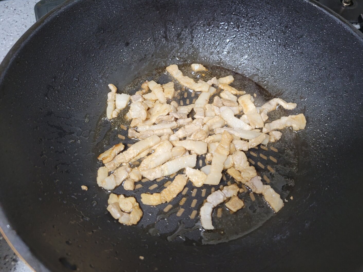 팬에 식용유 3T를 넣고 고기를 넣은 후 고기의 겉면이 살짝 익을 때 쯤 간장을 1/2T를 넣어서 밑간을 해주세요.