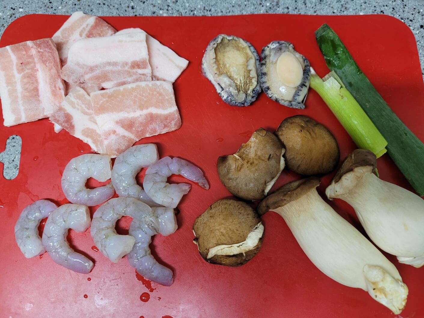 저는 해삼, 표고버섯, 팽이버섯, 죽순 대신에 냉장고에 있던 전복과 새송이버섯을 사용했어요.