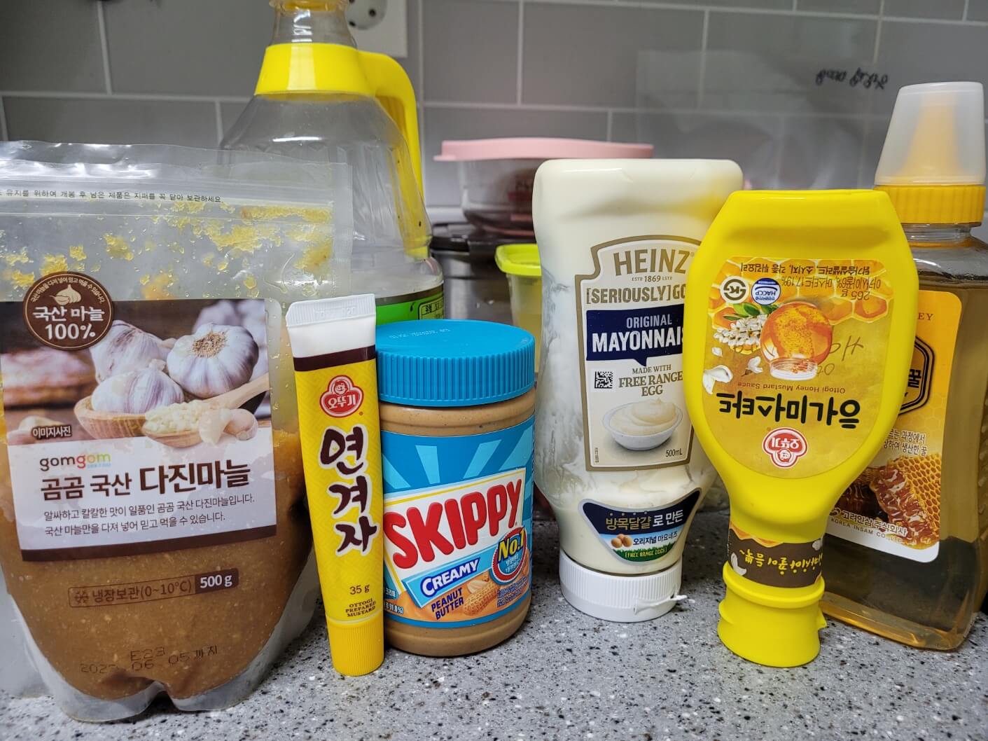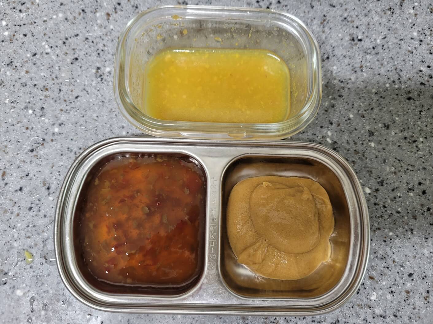 연겨자소스: 연겨자 1/2T, 꿀 1T, 식초 1T, 다진마늘 1t