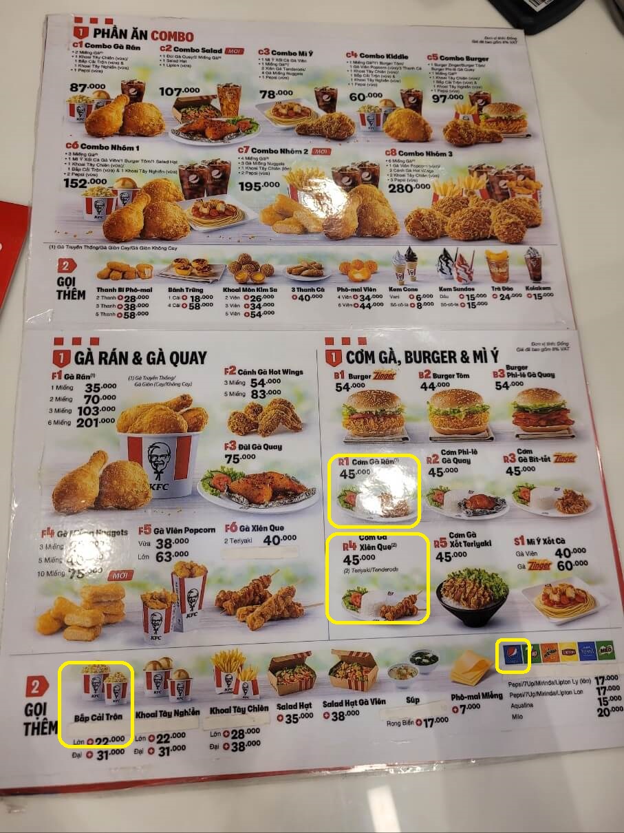 저희는 롯데마트 나쨩점을 방문한 김에 kfc에서 평소 궁금했던 베트남에서만 먹을 수 있는 메뉴를 주문해보았어요.