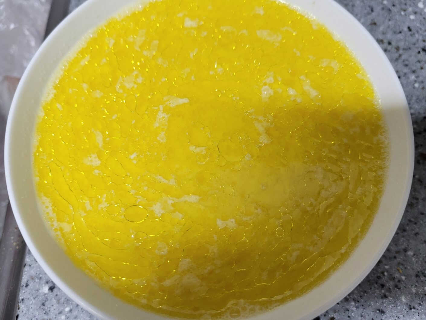실온의 달걀과 뜨거운 물, 식초(사과 애플 사이다 비니거), 올리브유를 잘 섞어줍니다.