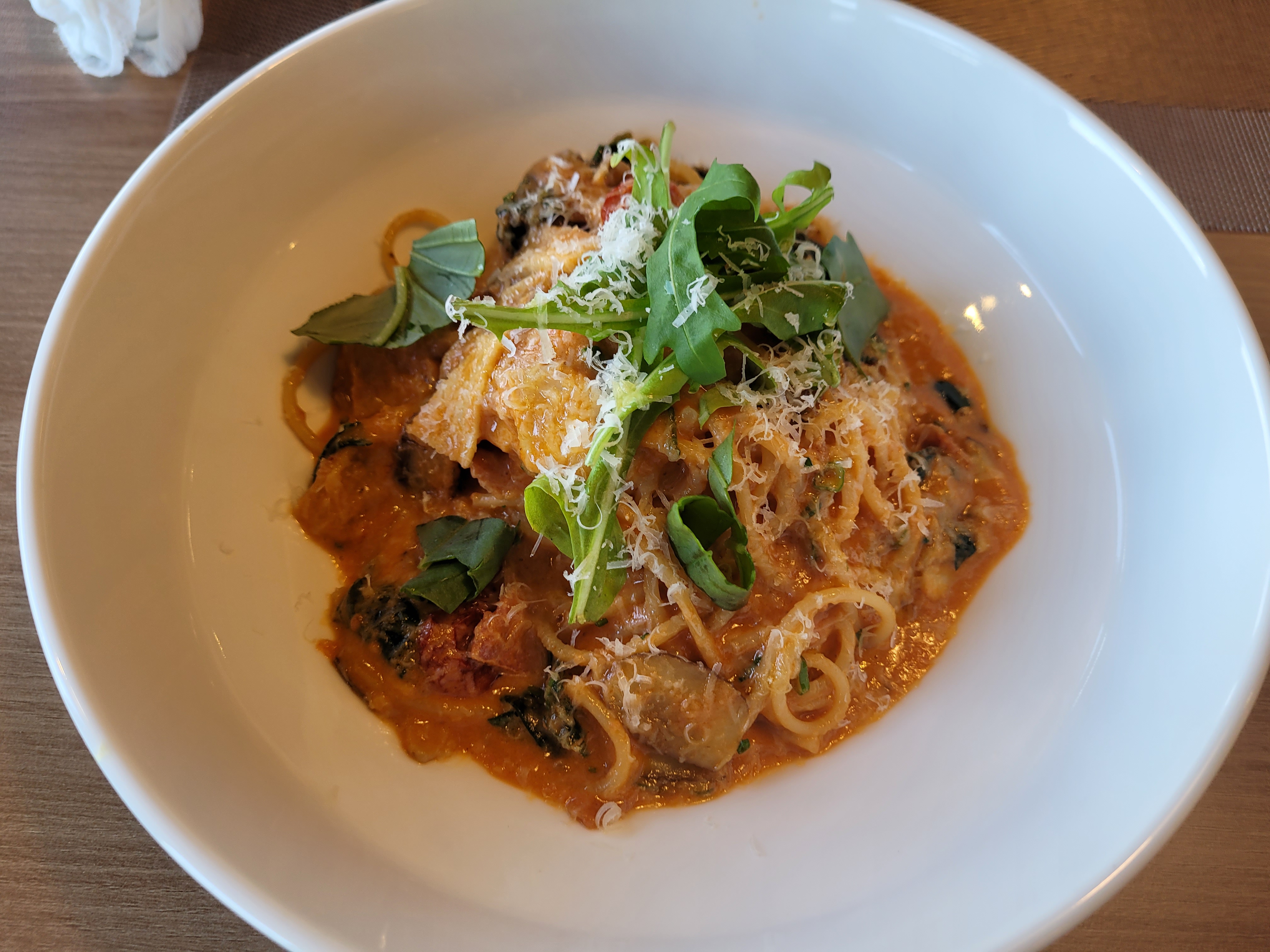 스테이크는 미디엄 레어로 주문했는데, 부드럽고 맛이 있었어요. 파스타도 적당한 토마토 베이스에 해산물이 들어있는… 해산물 파스타..