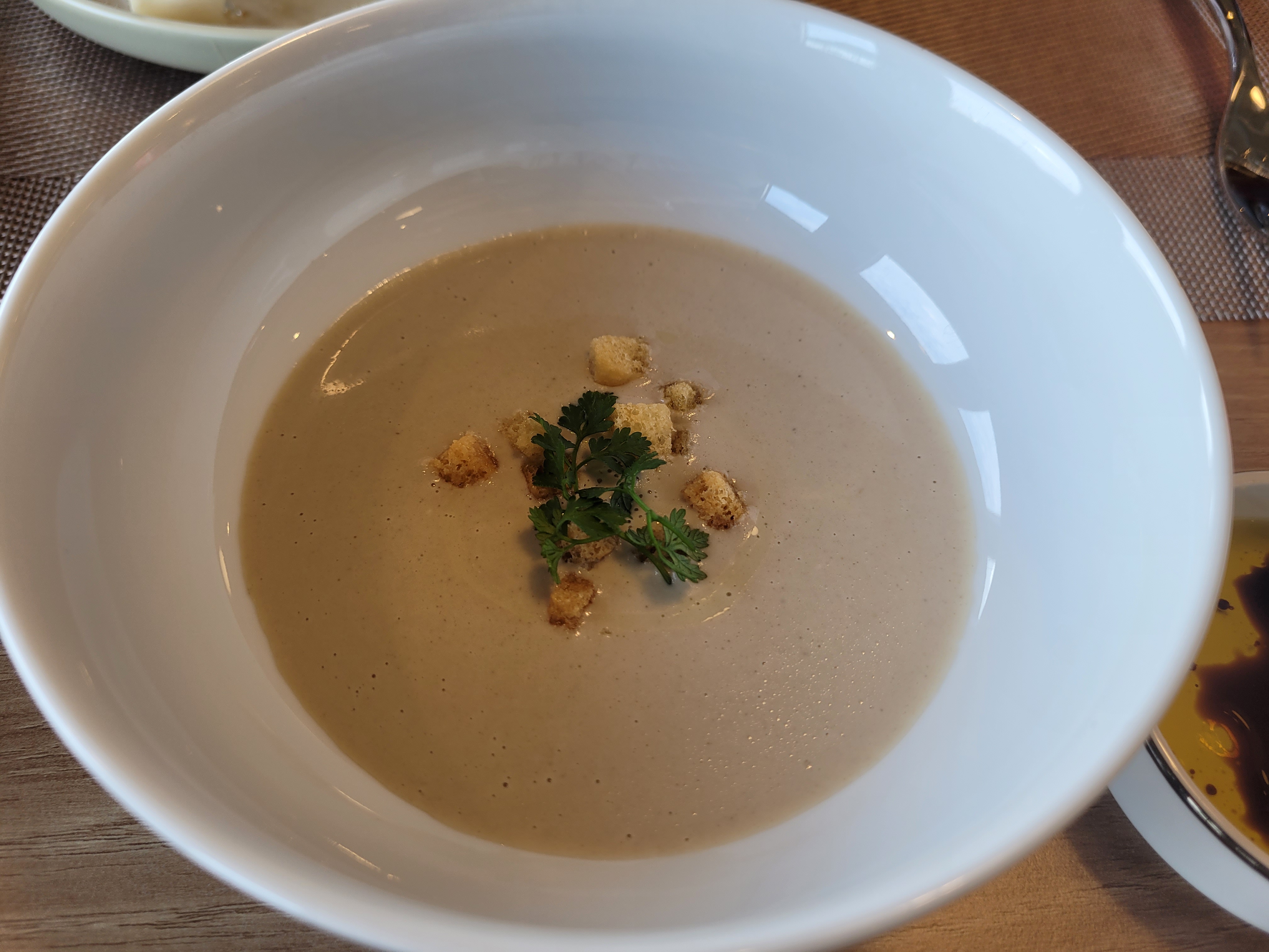 버섯스프는 에드워드권 셰프가 자랑하는 스프라는데 부드러운 식감이 좋았지만 저희에게는 트러플향이 생각보다 강하게 느껴졌어요.