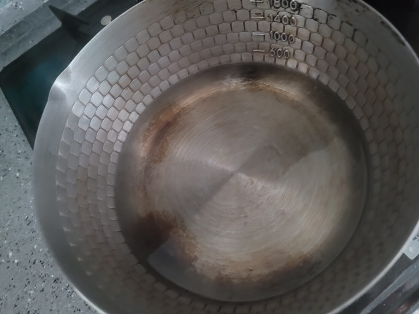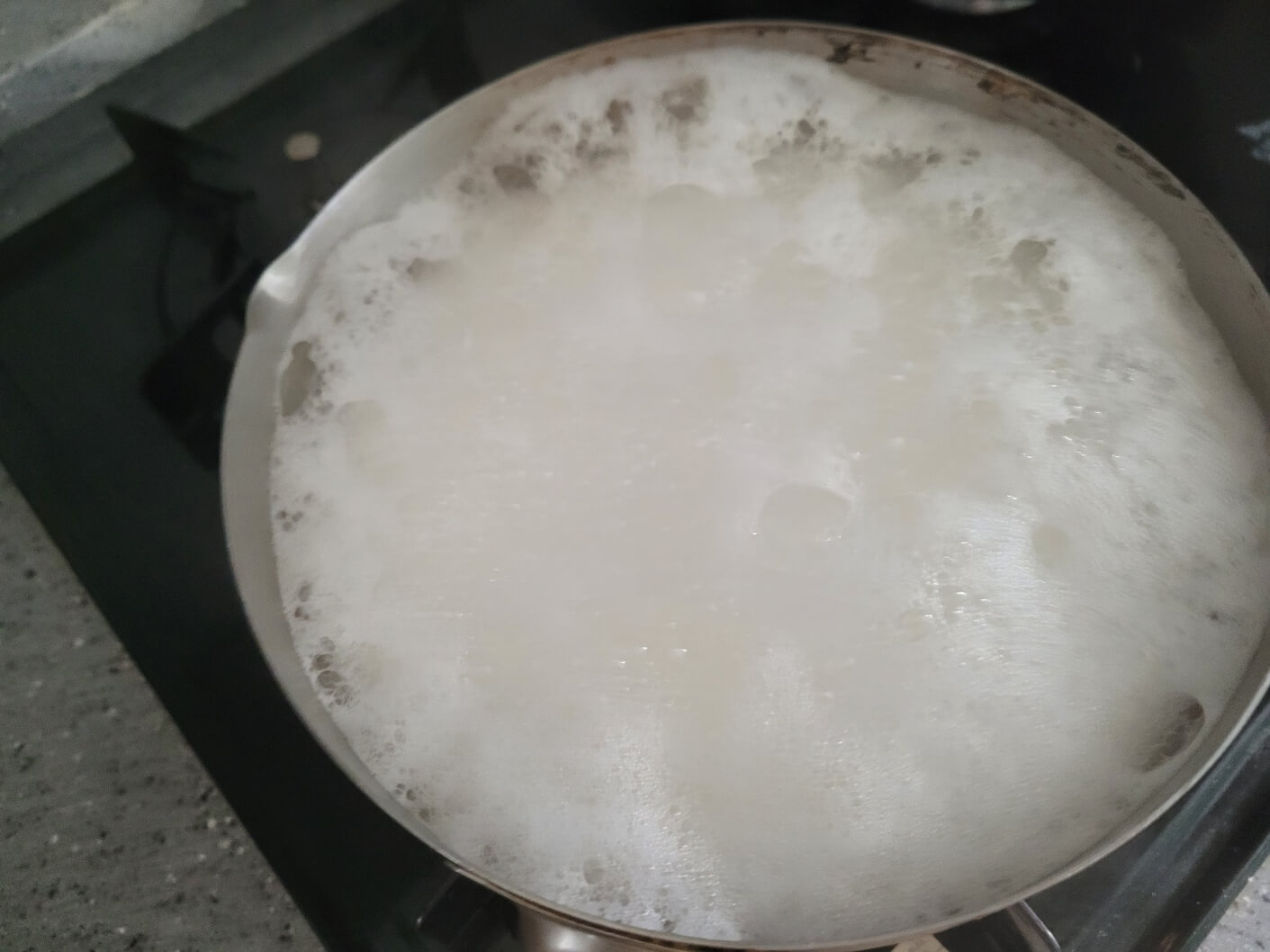 - 냄비바닥에 과탄산소다를 충분히 깔리도록 넣어주세요.