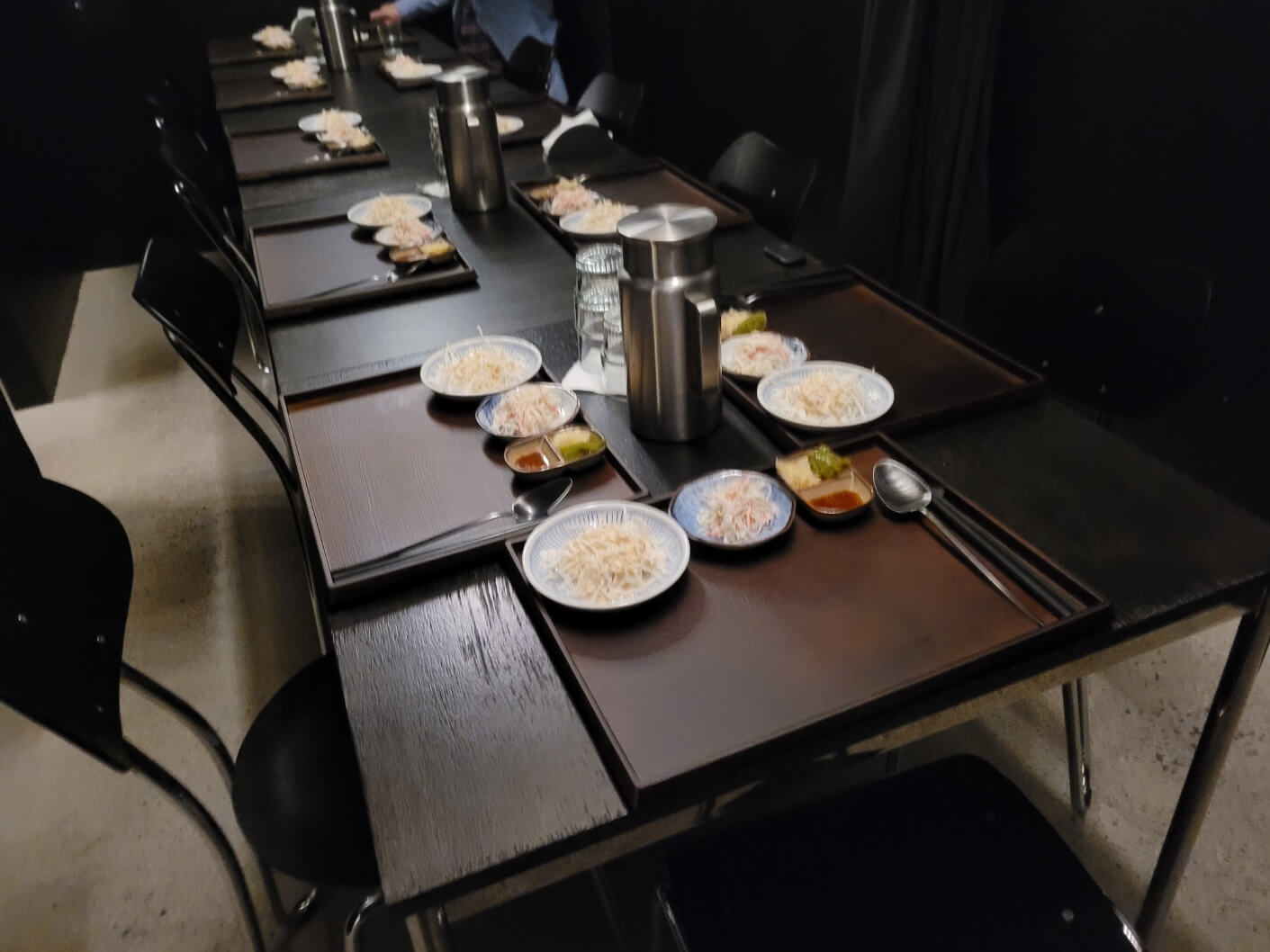 1층에는 테이블이 있고, 1.5층에는 단체가 식사 가능한 룸이 있어요.