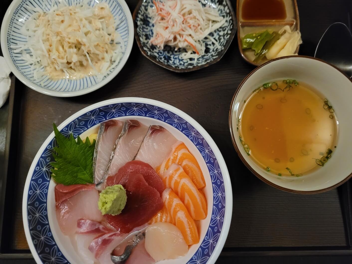 카이센동은 초밥을 만들어 먹을 수 있게 간이 된 밥과 위에 신선한 회, 그리고 와사비가 올려져있어요.