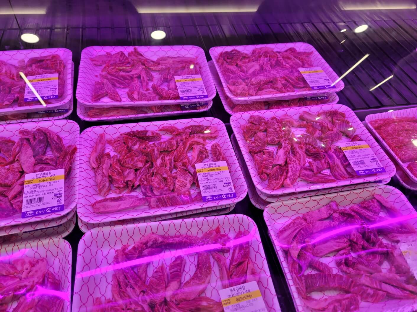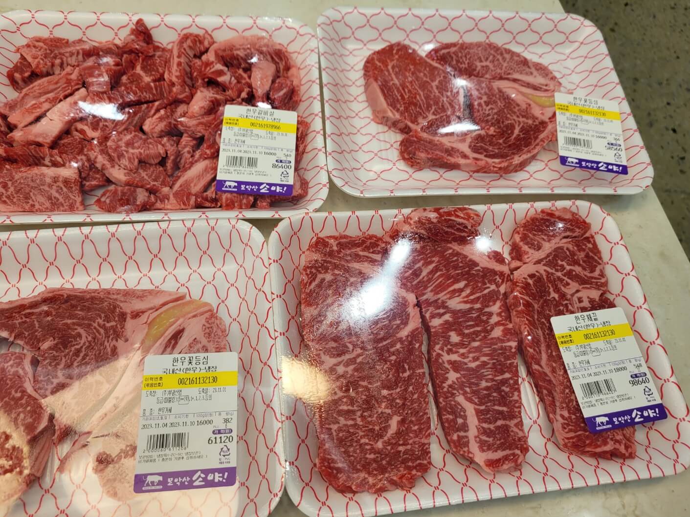 저희는 성인 5명, 초등학생 아동 2명이 방문했고, 고기는 1층에서 아래와 같이 구입해서 올라왔어요.
