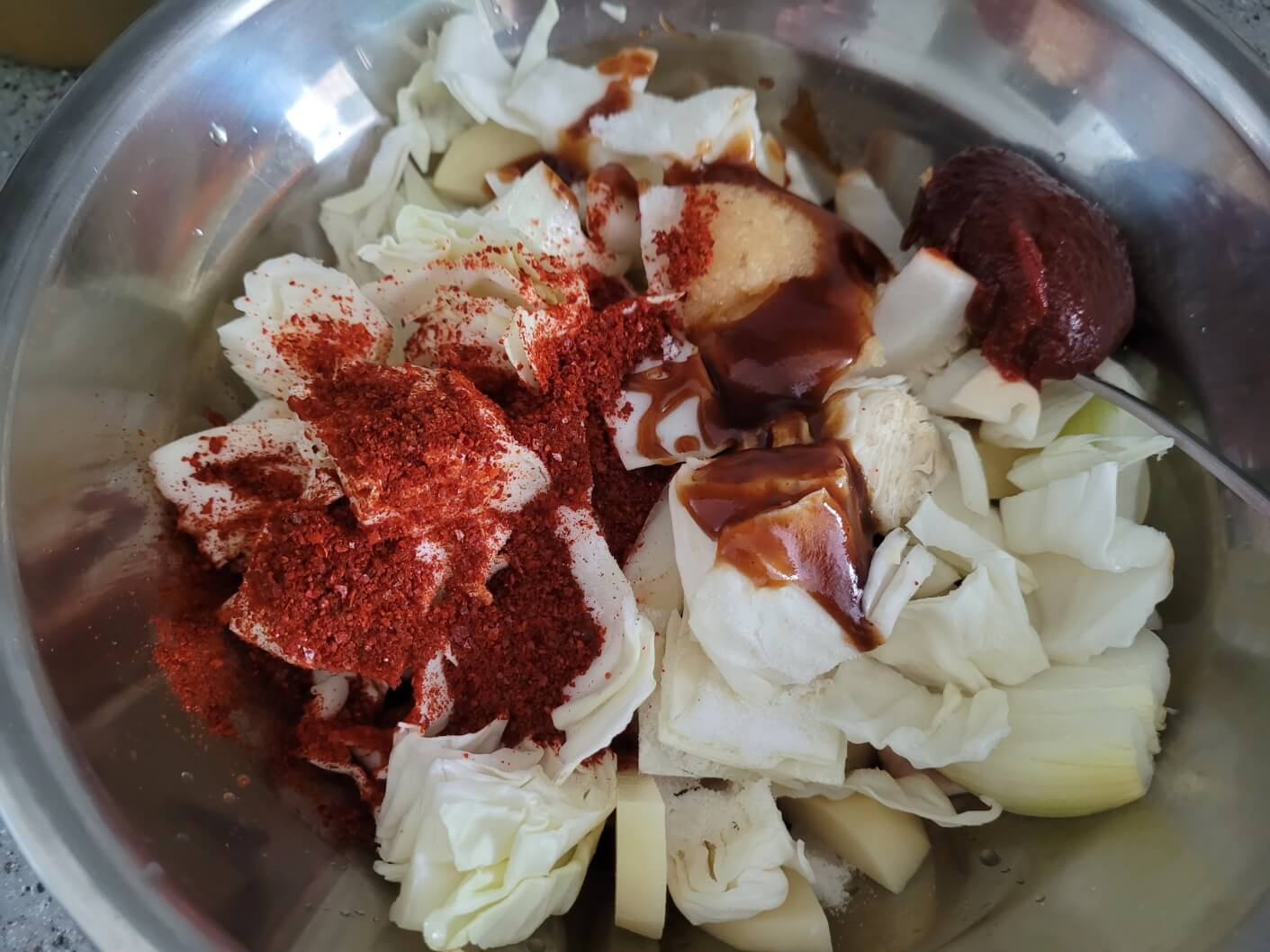 - 양념장: 고추장 크게 1스푼, 스테이크 or 돈가스 소스 2스푼 (진간장 1스푼+굴소스 1스푼),