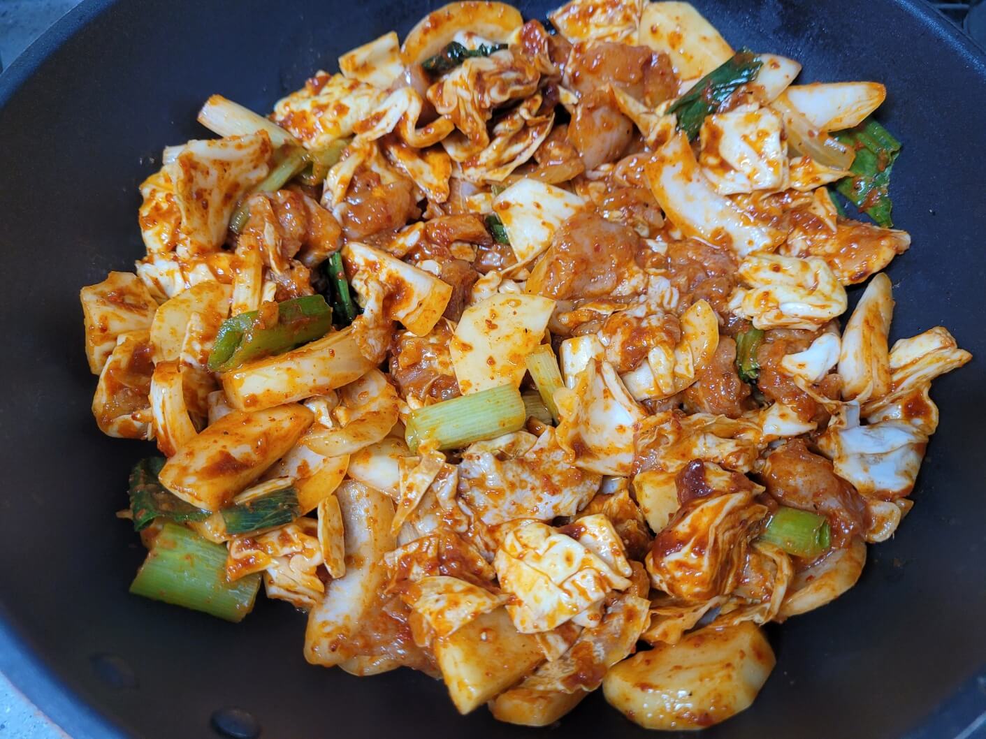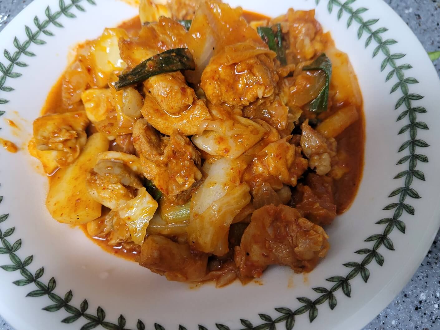 - 닭다리살 정육 350g, 양파 1/2개(130g) , 대파 1/2 대(80g), 양배추 80g, 감자 1/2개(100g)
