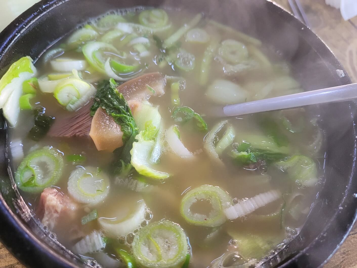 우선 소머리국밥 국물이 매우 진하며 우거지, 배추?가 들어가서인지 국물색이 녹색을 띠면서 매우 진하고 시원했어요.