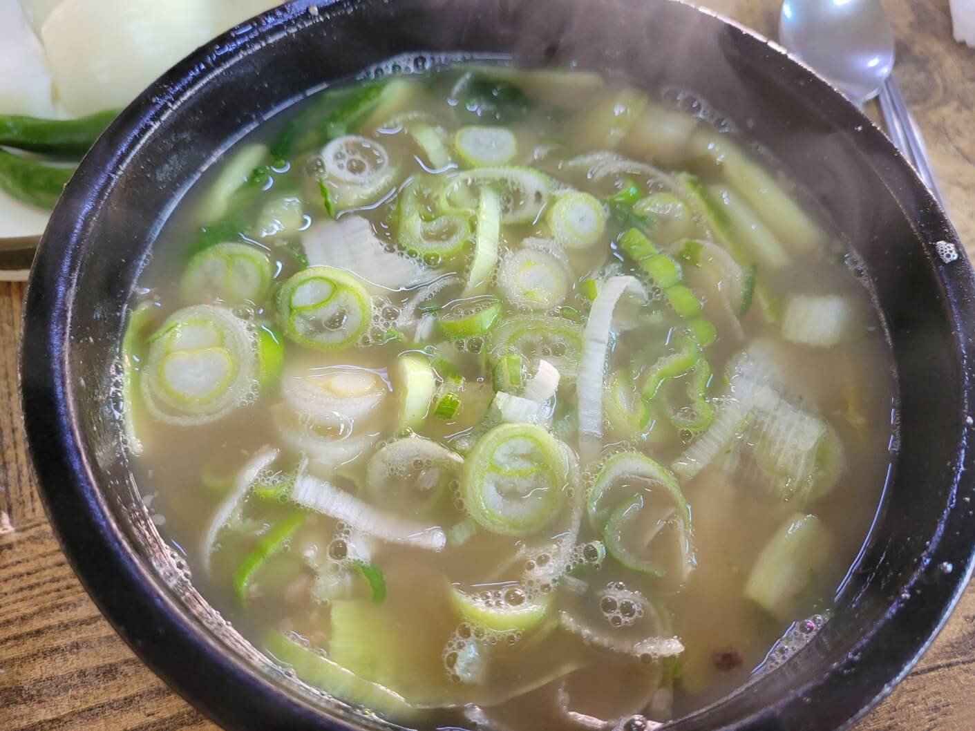 국밥이 나오면 청양고추 다져진 것을 1 작은술 넣고 드시는 것을 추천해요.