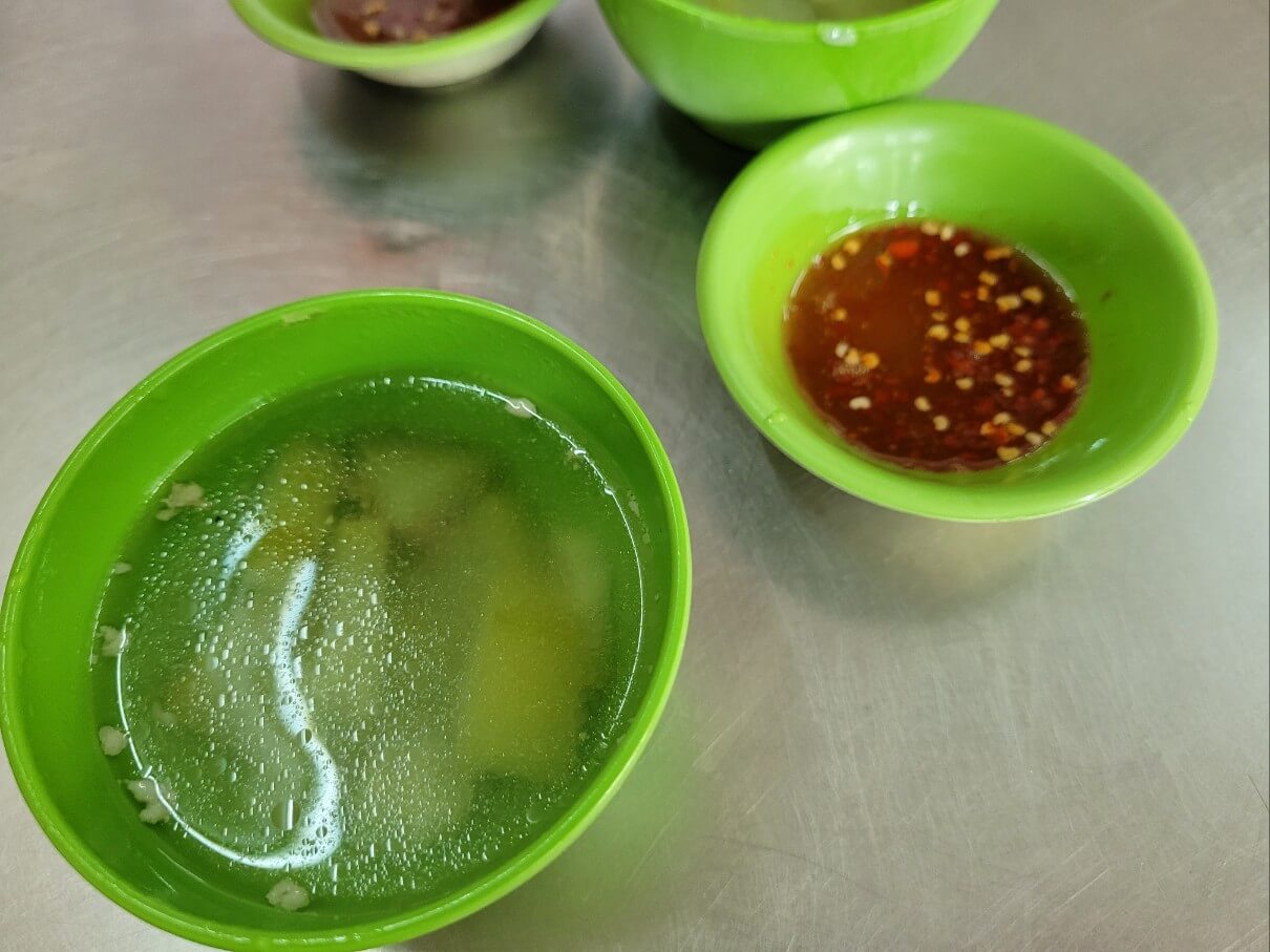 소스는 피쉬소스 같은 것에 매운 양념을 섞어주시는데 이 소스를 밥과 잘 섞어먹으라고 하시더라구요. 이 소스가 정말 별미였어요.