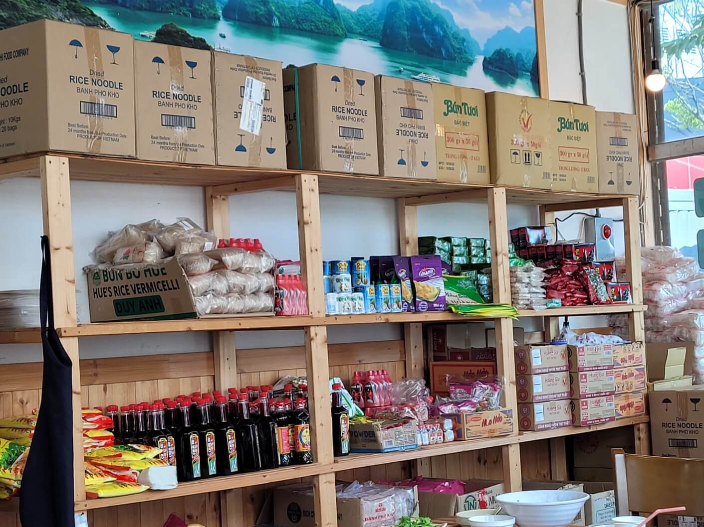 가게는 4인 좌식 테이블 10개, 앉는 공간에도 테이블이 4개 정도로 규모가 꽤 컸으며 한 쪽에는 베트남 식재료도 판매하고 계시더라구요.