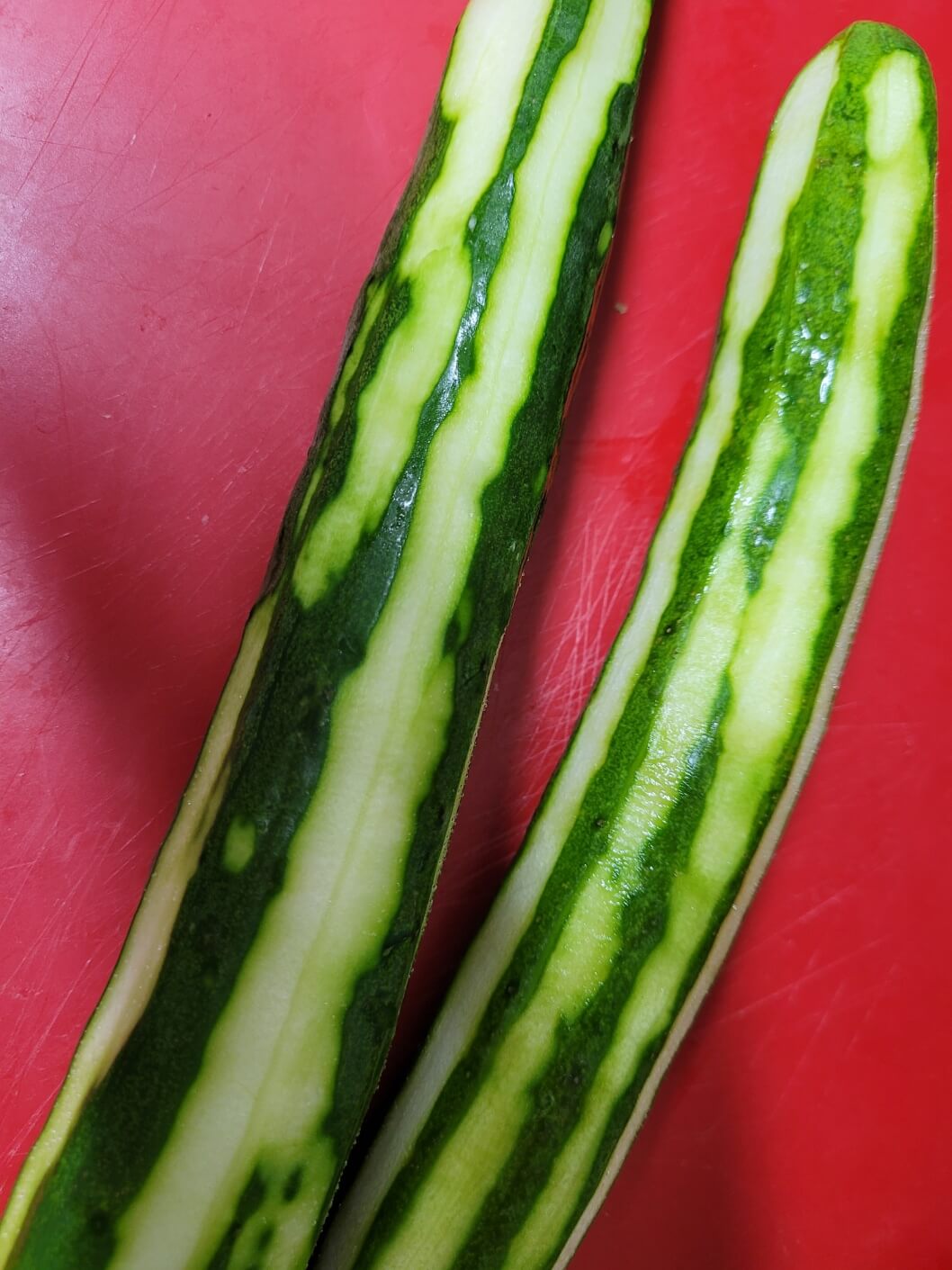 오이 2개를 준비하고, 꼭지를 제거해준 뒤, 껍질을 제거해주세요.