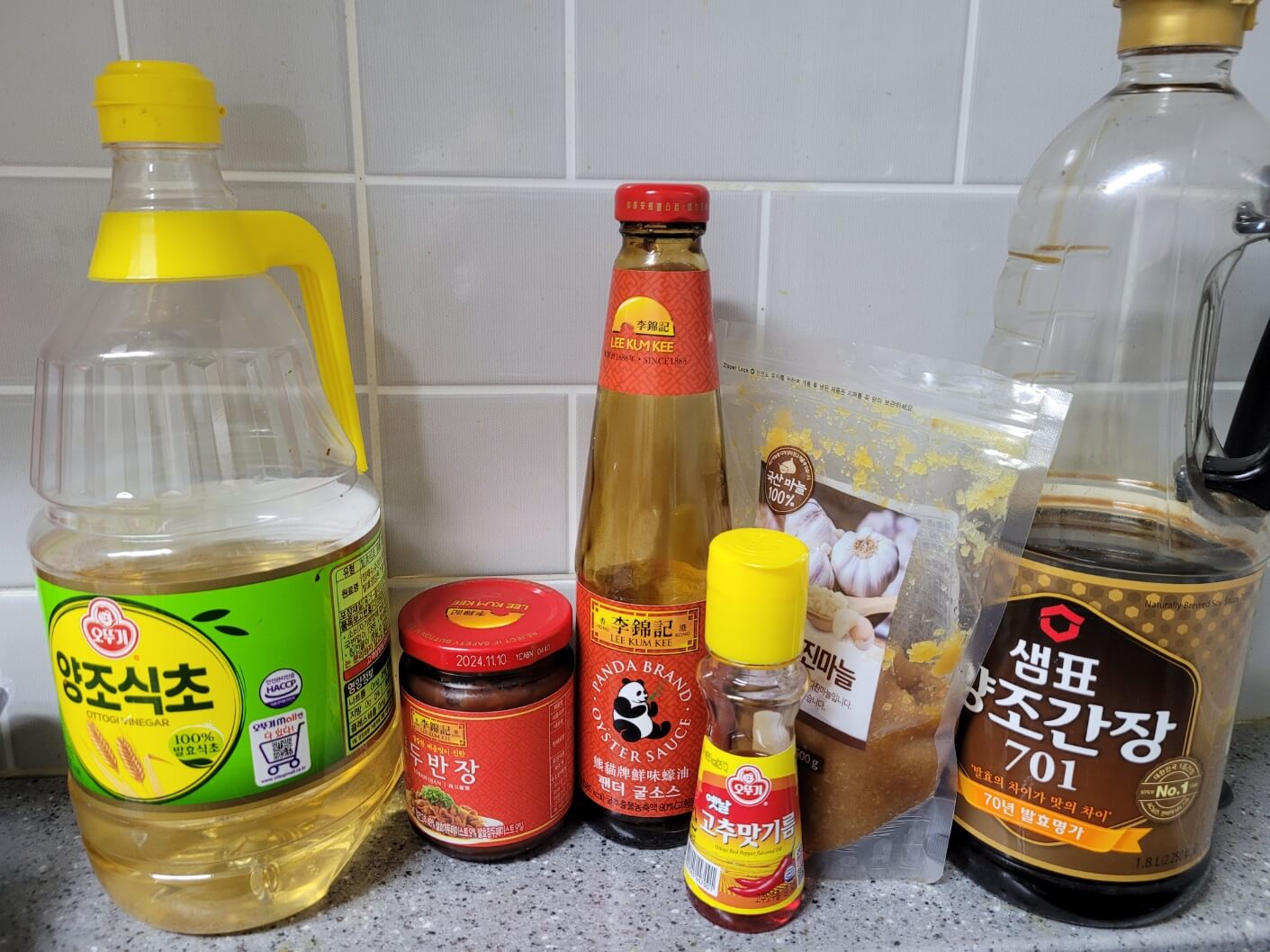 오이, 다진마늘, 두반장, 굴소스, 설탕, 식초, 간장, 고추기름