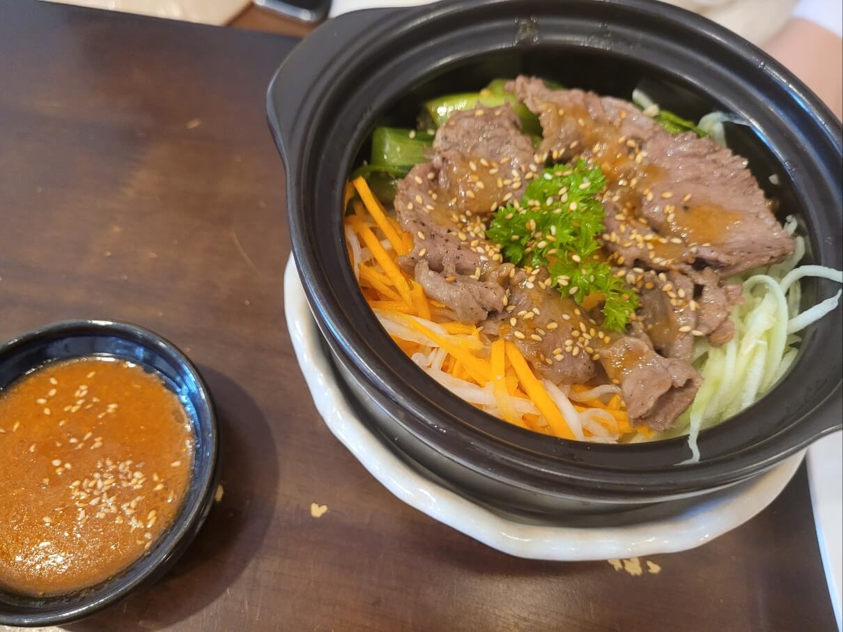 소고기 덮밥에 넣어 먹는 소스도 맛있었고, 게살스프는 게향이 정말 진하게 나서 좋았어요.