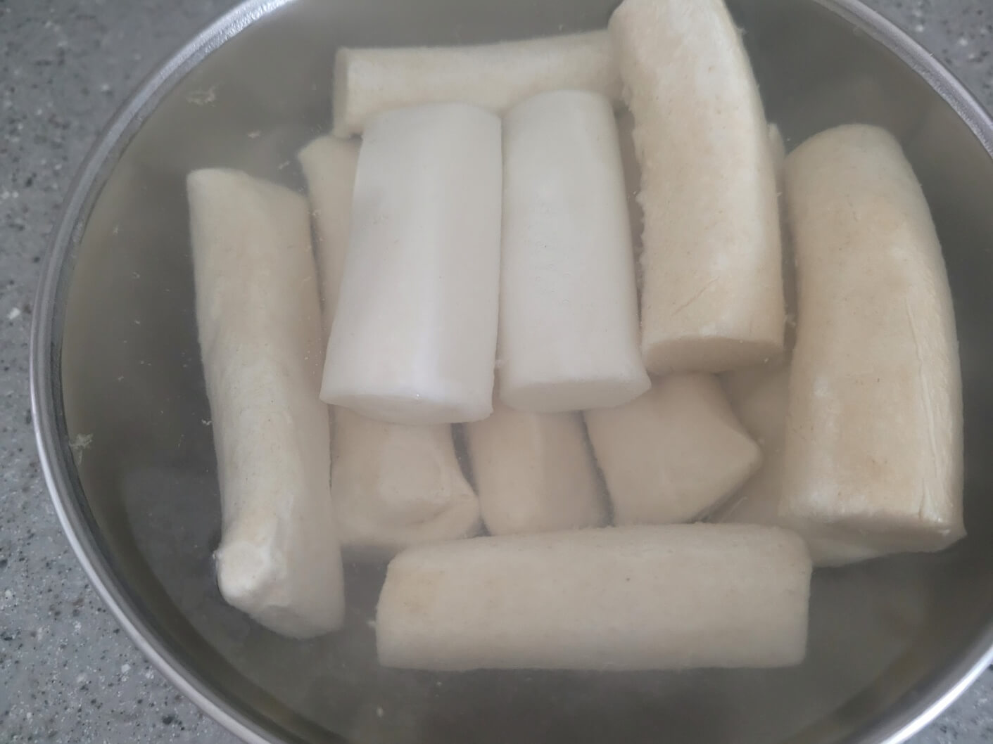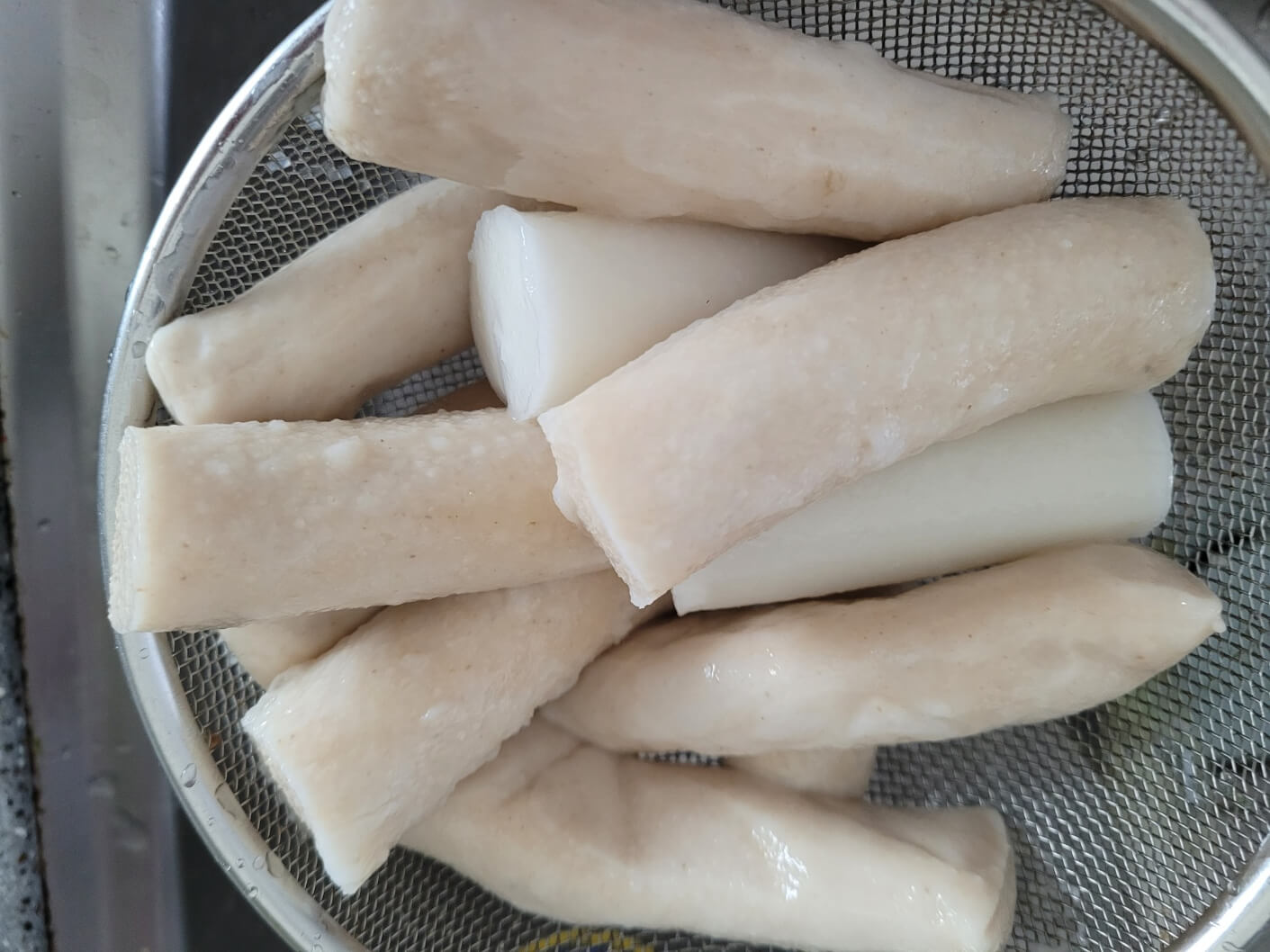 냄비에 물을 끓여 가래떡을 넣어서 끓이면 금방 한 떡처럼 부들부들 해져요. 오래 끓이면 퍼질 수가 있으므로 짧은 시간 끓여주시면 되세요.