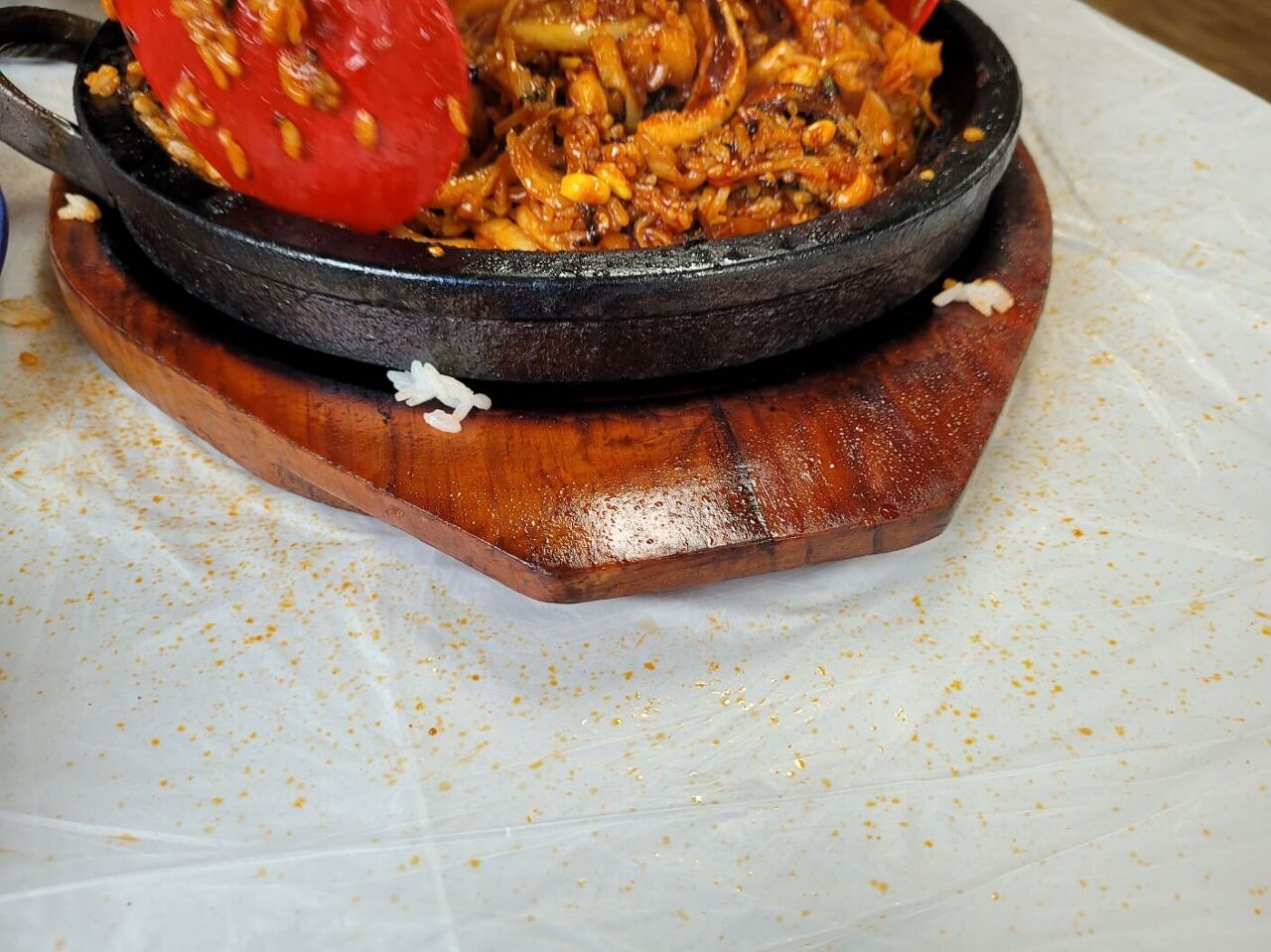 돌솥이 매우 뜨거워서 나온지 10분 정도까지 테이블 주변까지 양념이 다 튀어서 옷과 몸에 튀지 않도록 앞치마 착용은 필수랍니다~