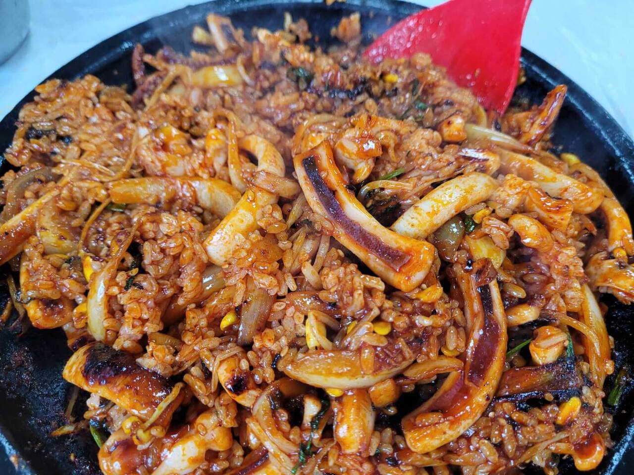 공기밥이 나오는데, 먼저 드시지 마시고 꼭 오징어볶음이 나오면 바로 비벼드세요~