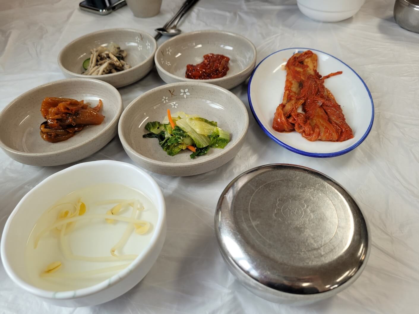 기본 반찬은 다음과 같아요. 김치는 3년 묵은 묵은지라고 하더라구요.