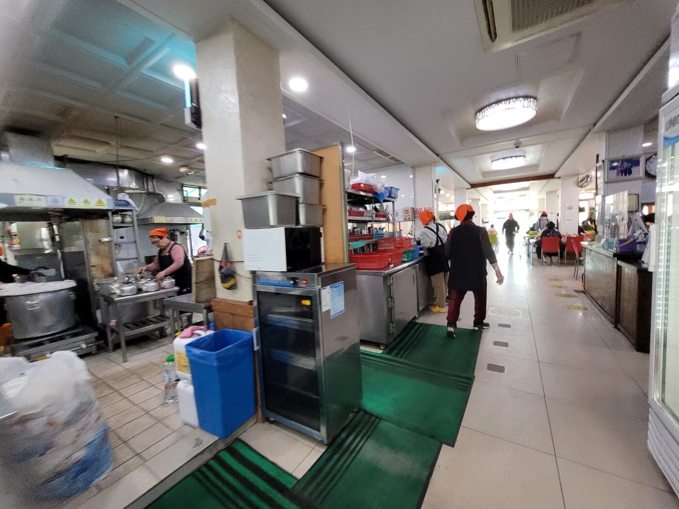 가게는 매우 넓고 입구에 오픈형 주방이 바로 보이며 테이블로 매우 많아요.