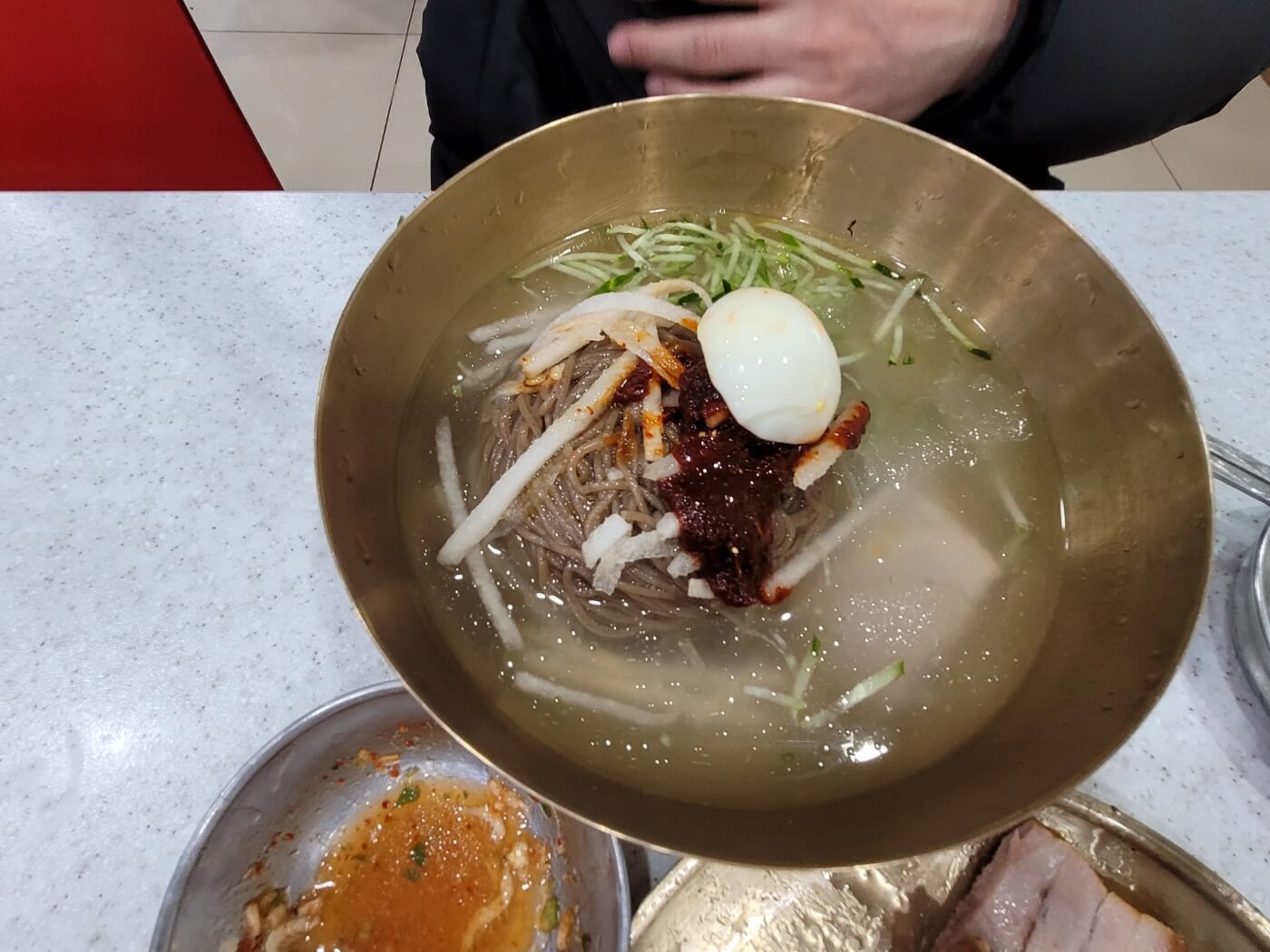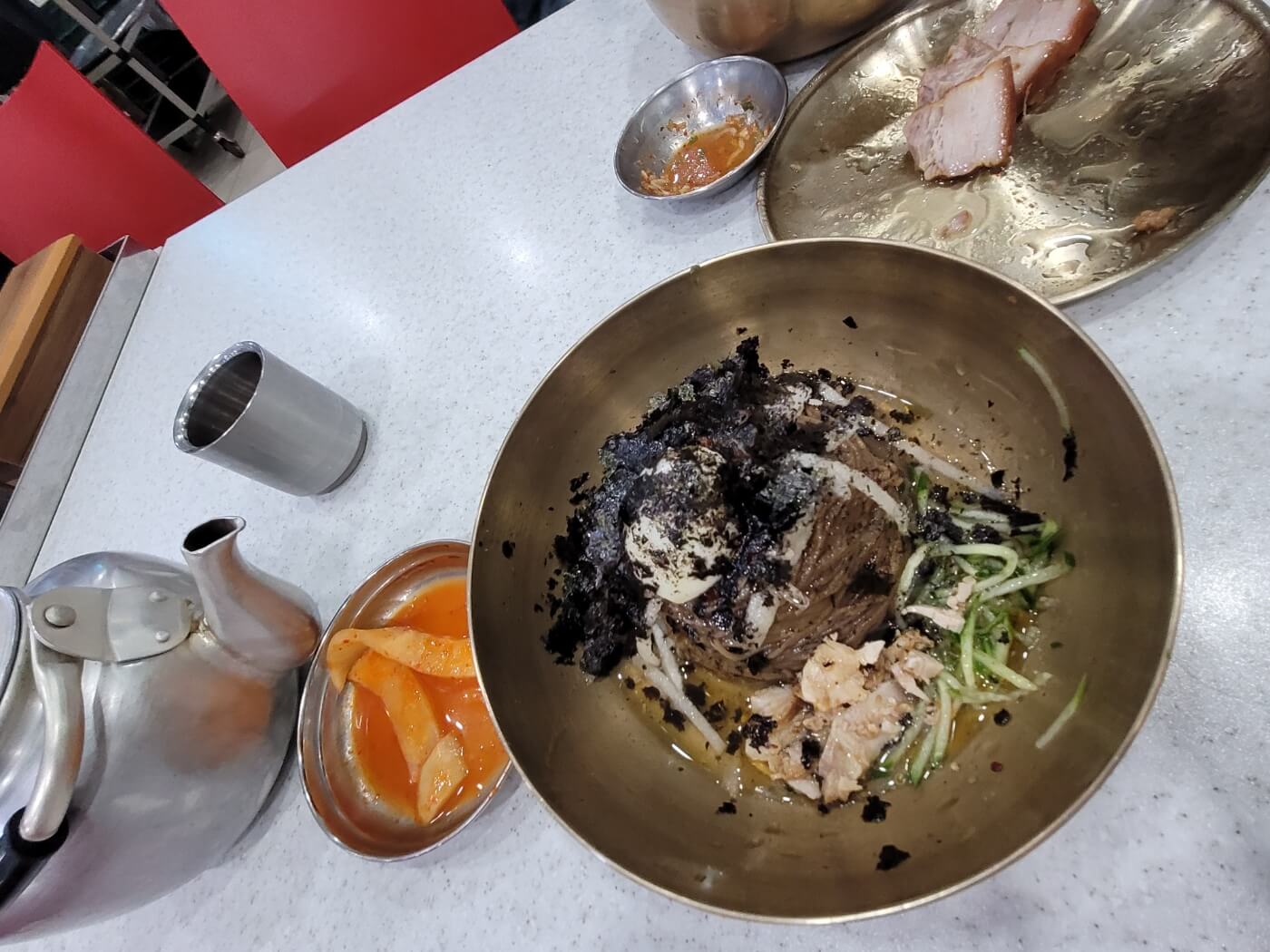 크롱님은 막국수는 평범하지만 주전자로 제공되는 온육수와 편육고기가 일품이라고 하더라구요.